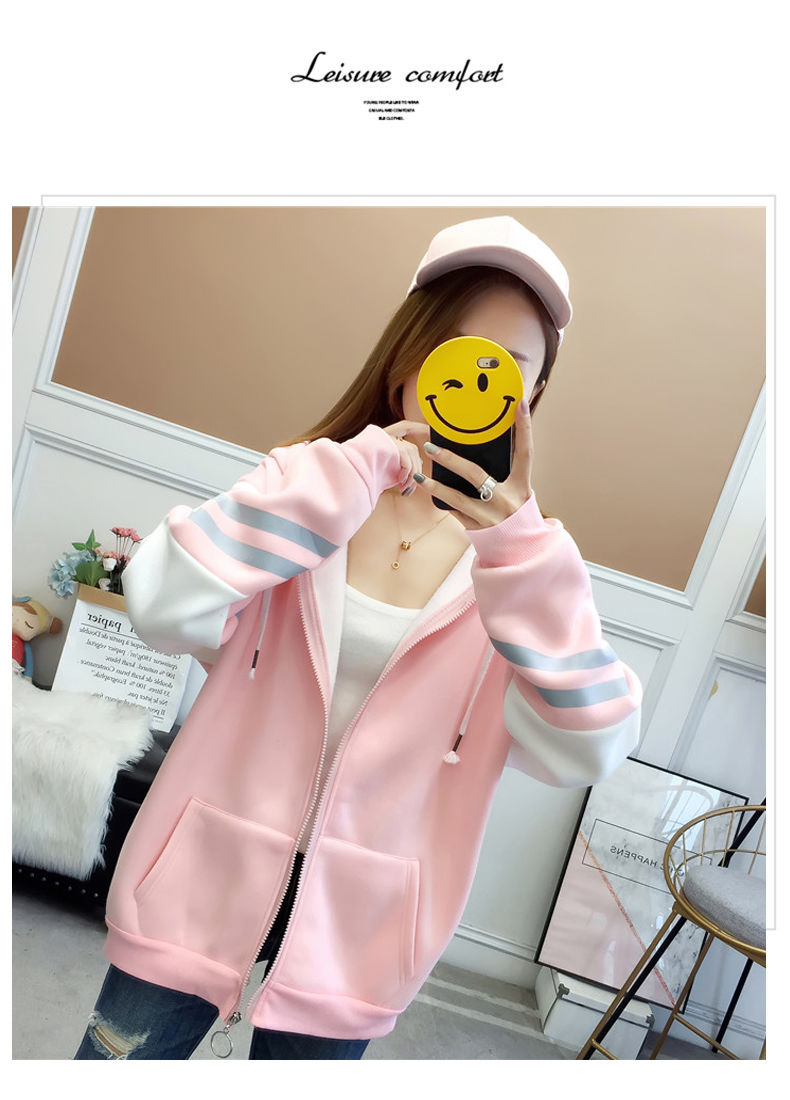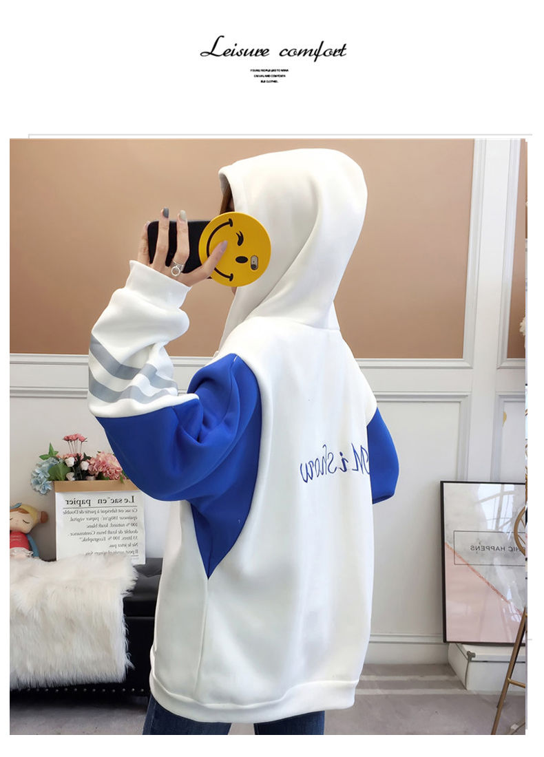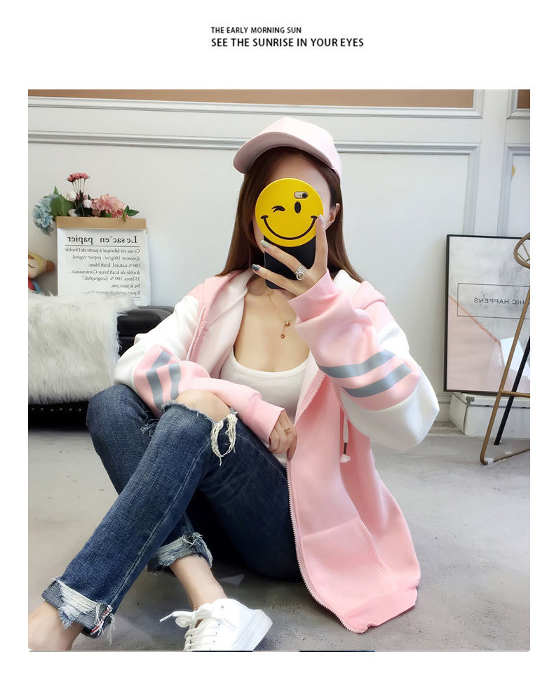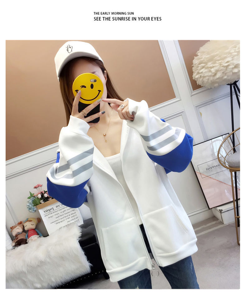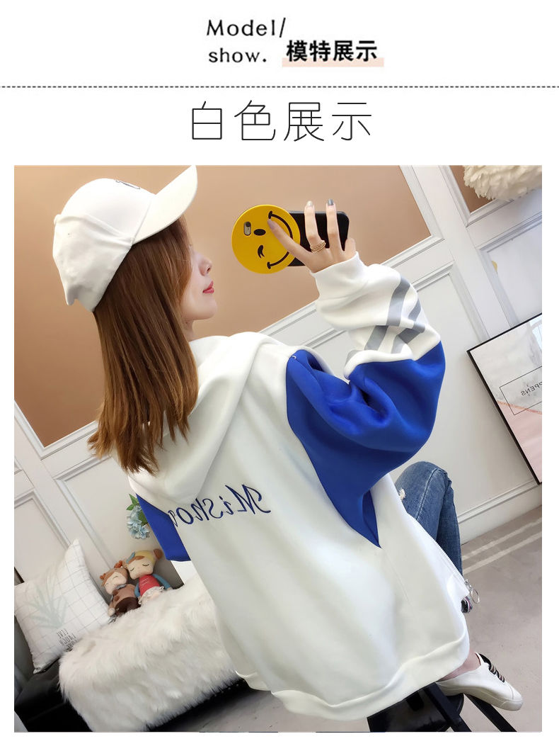 承包你整个秋冬的时髦~韩版大码连帽卫衣女牛油果绿学生加绒加厚宽松拉链拼色外套