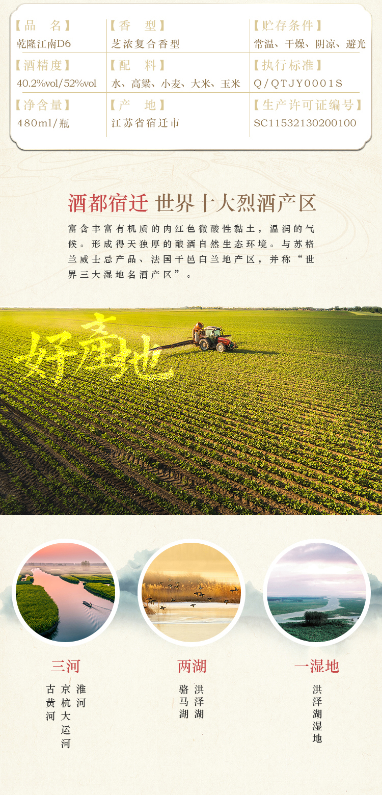 乾隆江南D6酒480ml 芝浓复合香型白酒