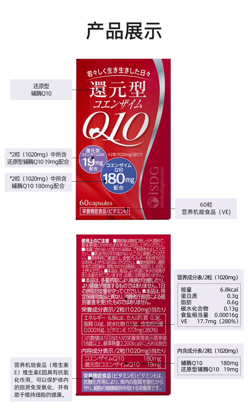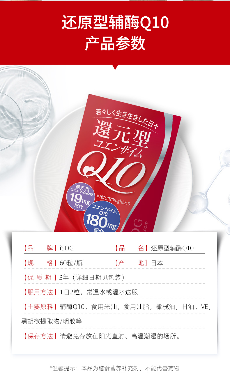 【品牌直营 尾货促销 89到手两瓶 保质期2026-03-14】iSDG医食同源 还原型辅酶Q10 60粒/盒 每天补充180mg辅酶Q10和19mg还原型辅酶Q10