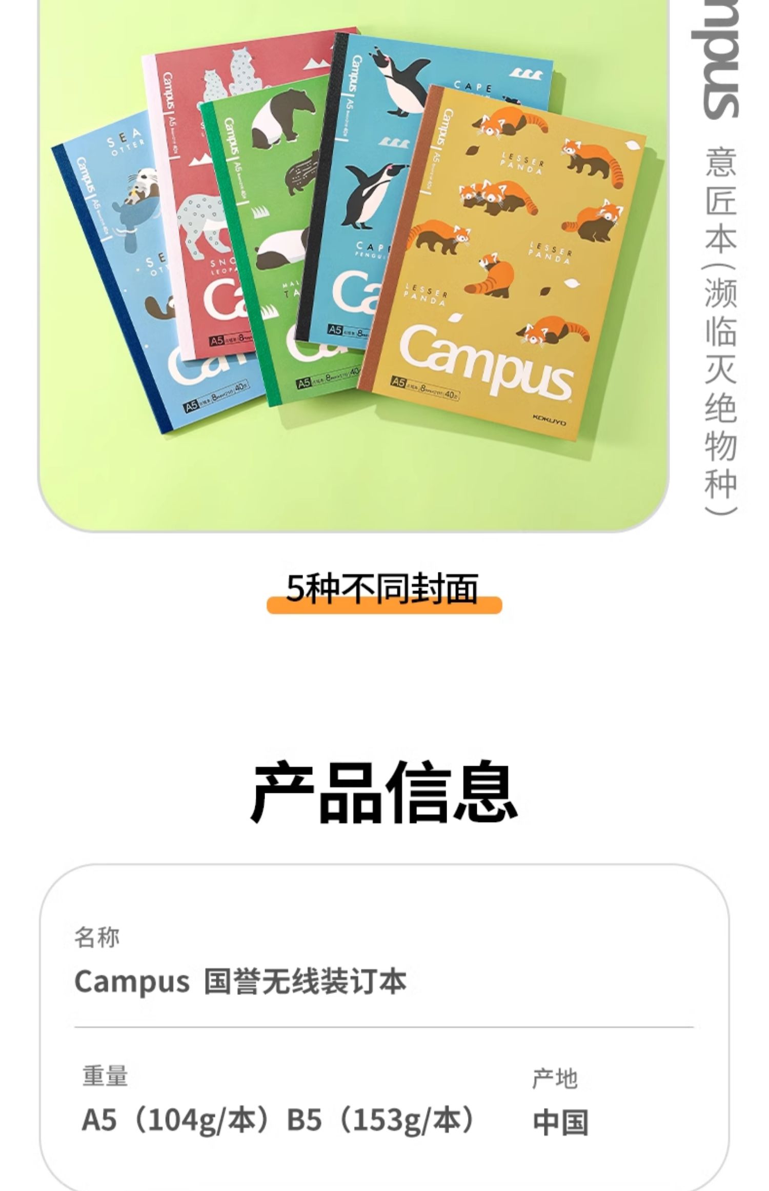 国誉Campus系列无线装订本濒临灭绝物种