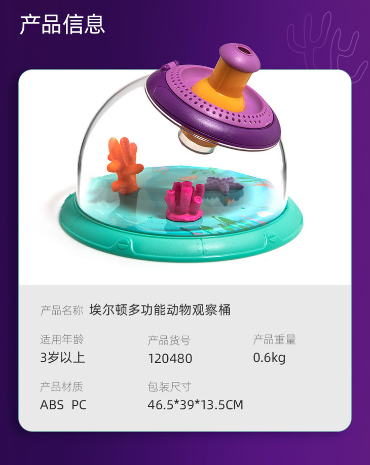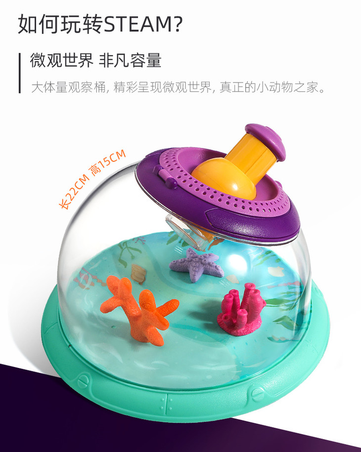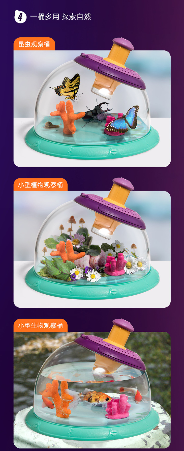 【360度旋转放大镜观察养金鱼、蚕宝宝、乌龟】埃尔顿多功能观察桶幼儿园小学生户外探索玩具