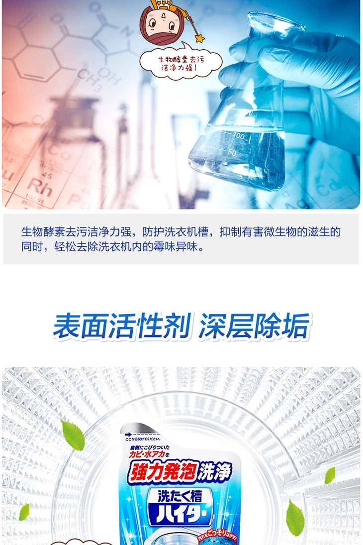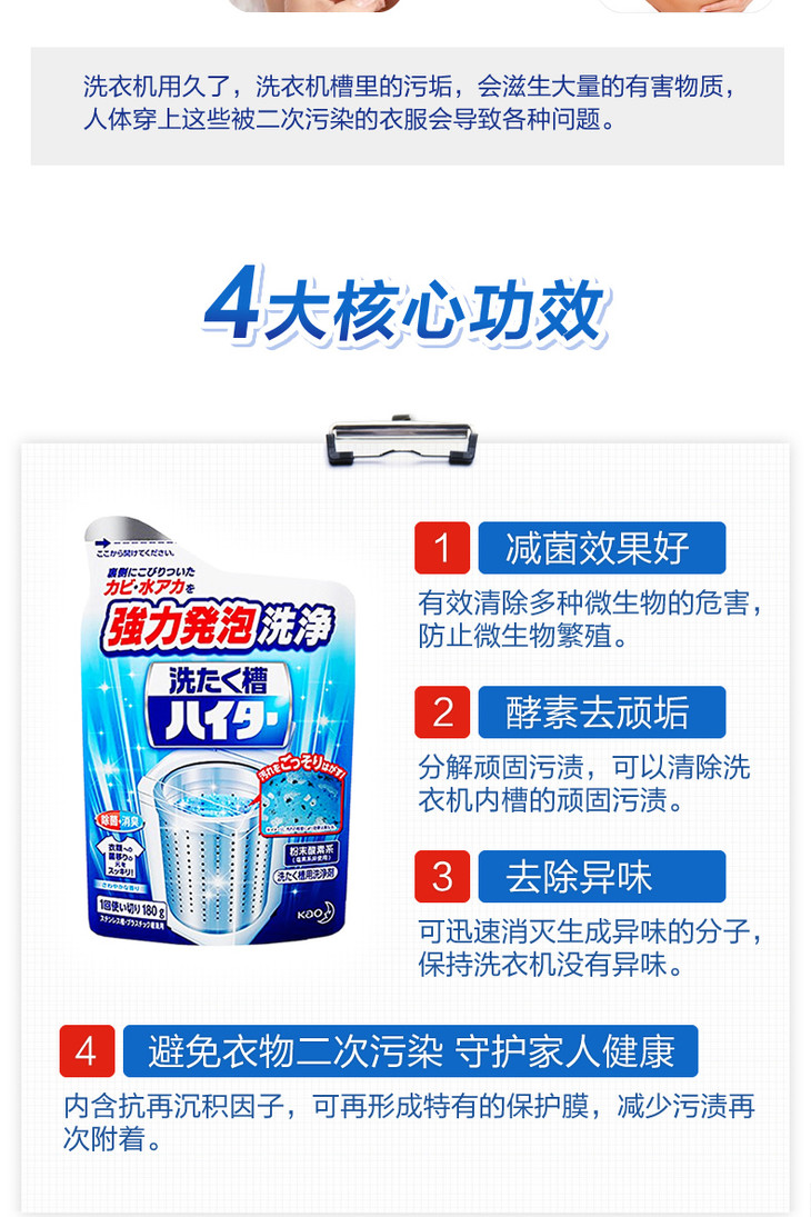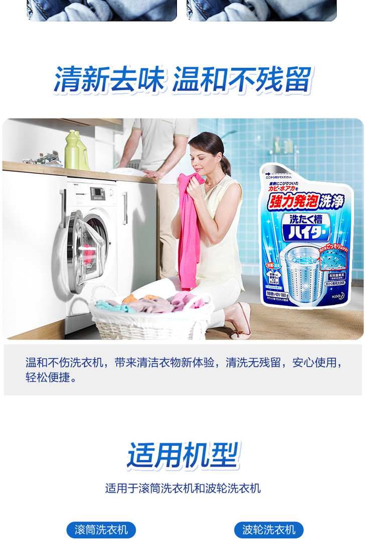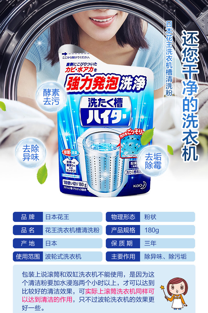 日本进口 花王洗衣机槽 清洗剂 全自动滚筒 除菌除垢去污粉 清洗剂 180g
