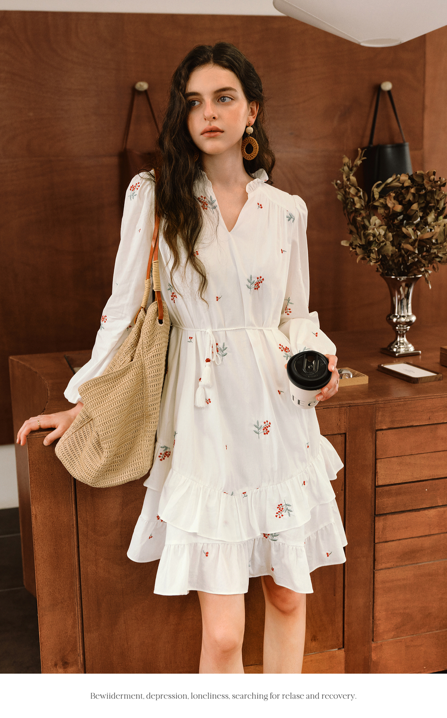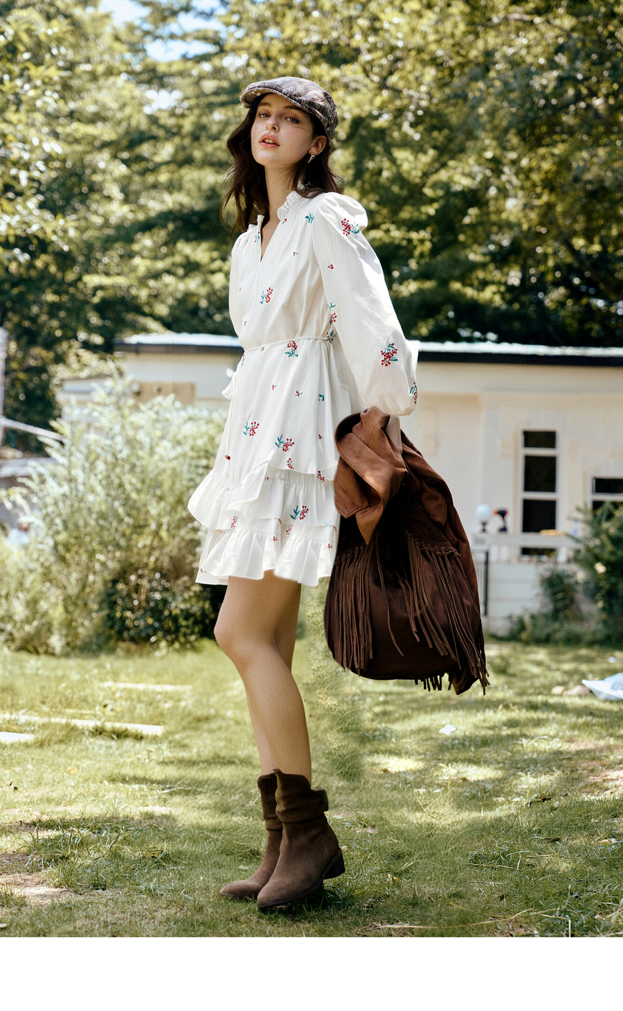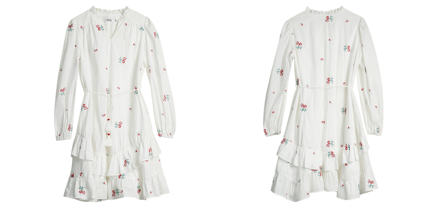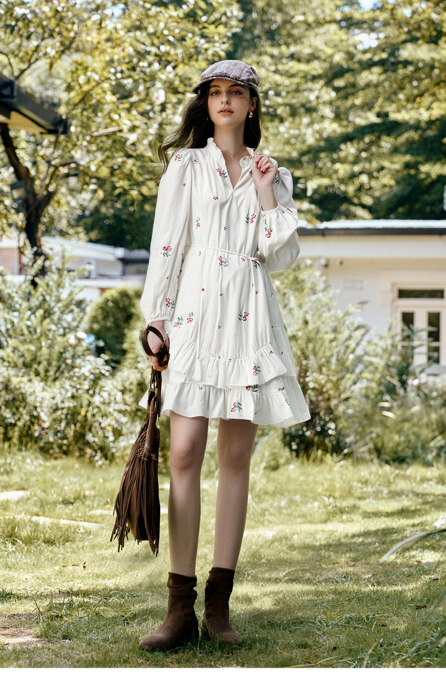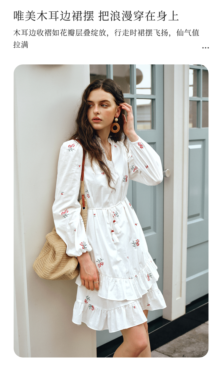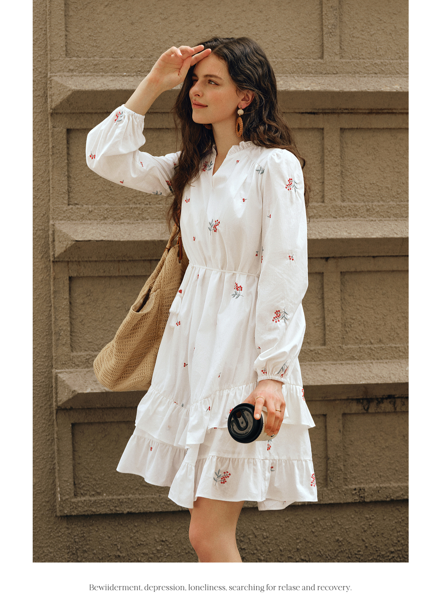 OLrain欧芮儿2025新款女秋季绣花白色法式度假连衣裙流苏绑带长裙