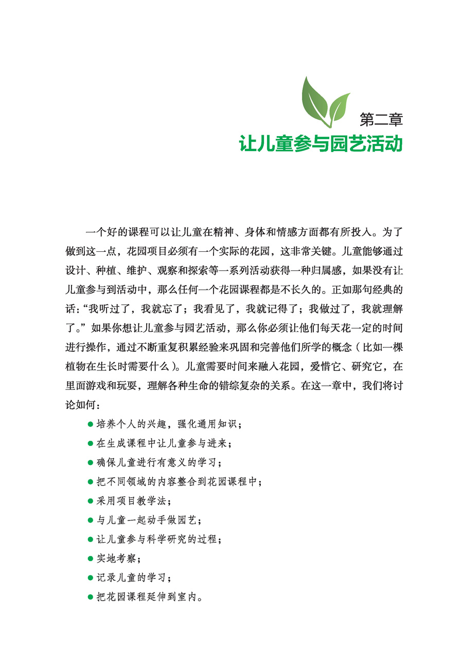 本书内容通俗易懂,为很多零基础的教师和家长提供了有价值的参考,能够有效地指导他们更好地开展园艺活动,推动儿童的语言、身体、社交、认知和情感等方面的发展,保护好儿童与生俱来的亲自然、亲生命的属性。