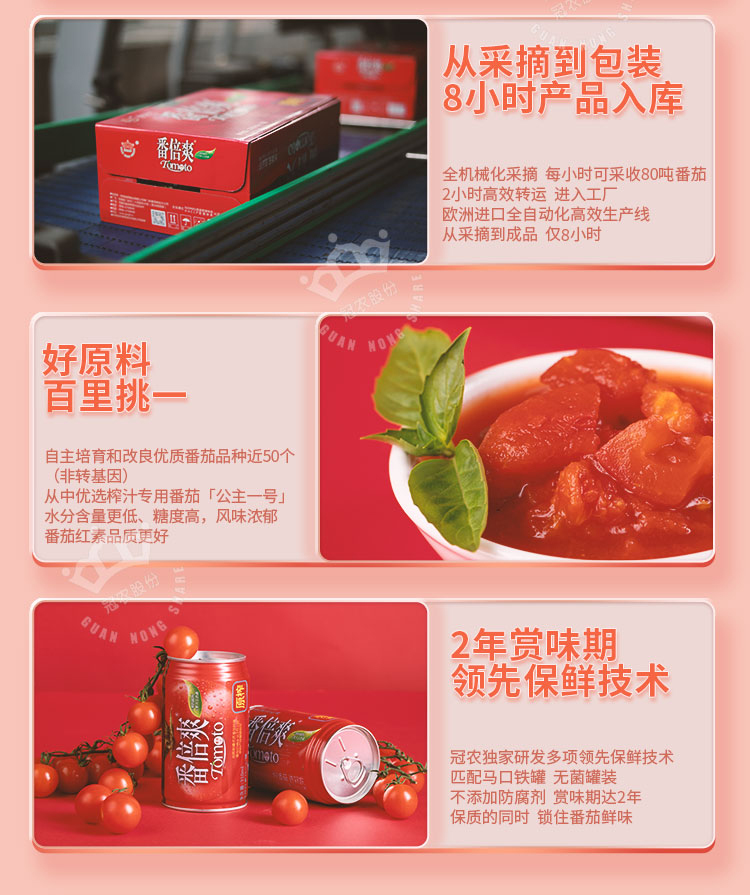 【2025年新货】(京东/顺丰)新疆冠农番倍爽番茄汁 310ml/罐 西红柿