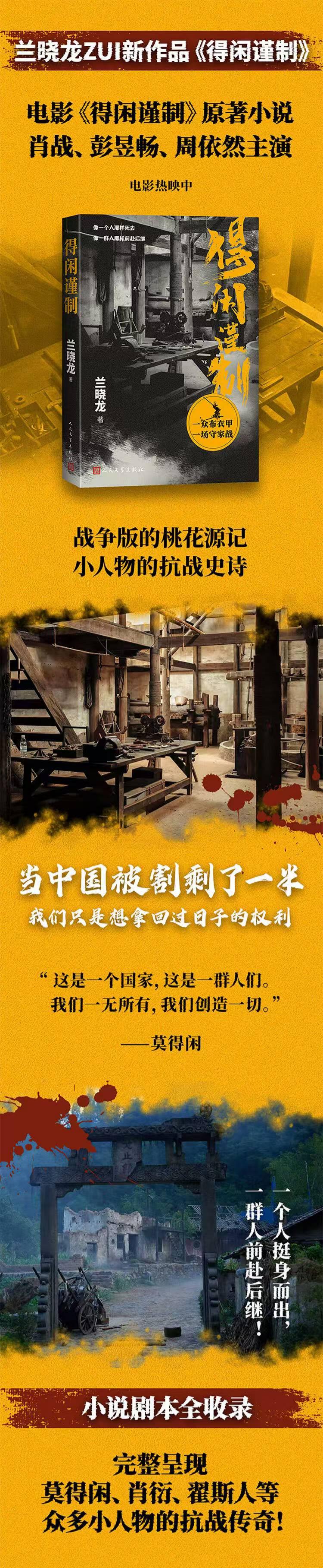 【肖战主演 电影原著】得闲谨制 兰晓龙 电影原著小说 肖战 彭昱畅 周依然主演 我的团长我的团 士兵突击 人民文学出版社官方正版