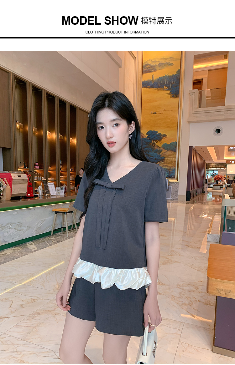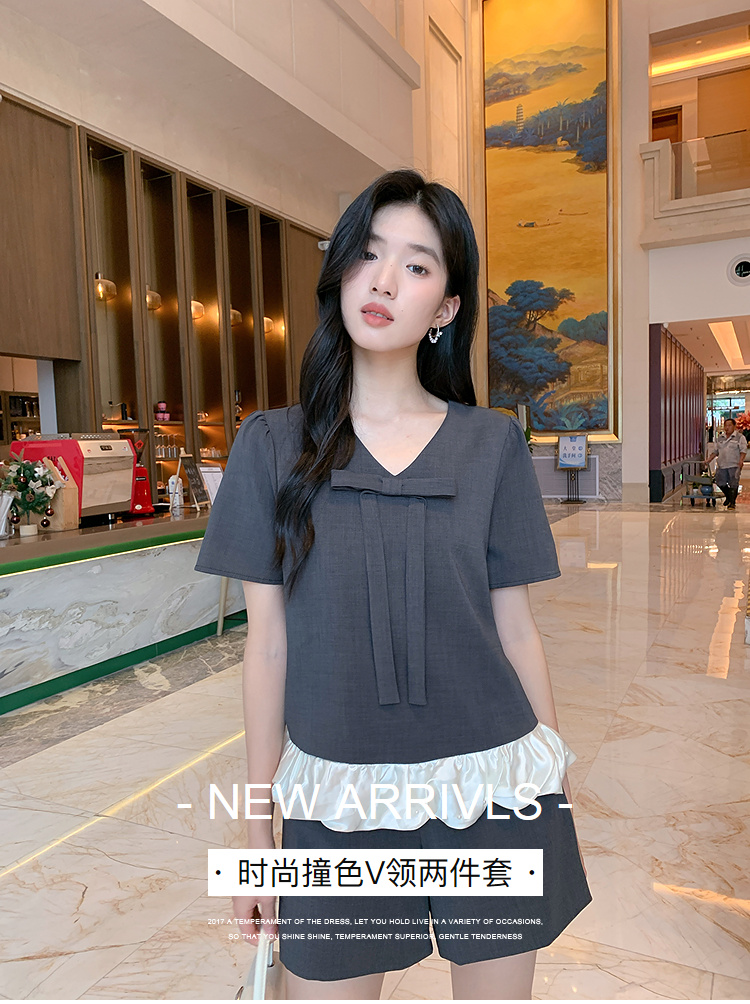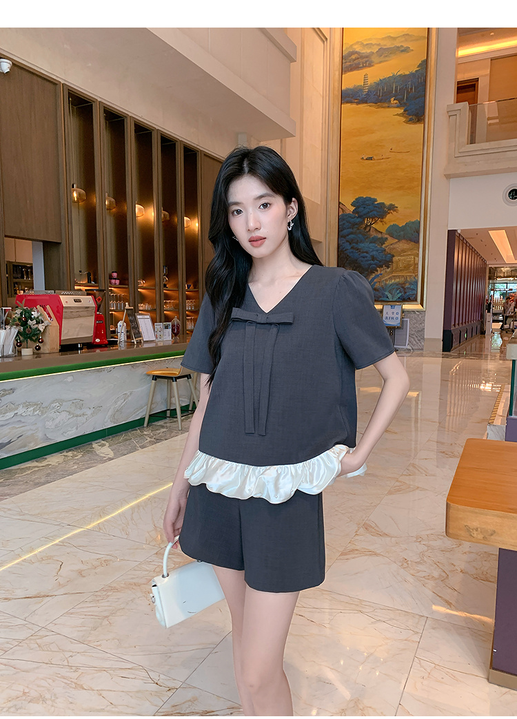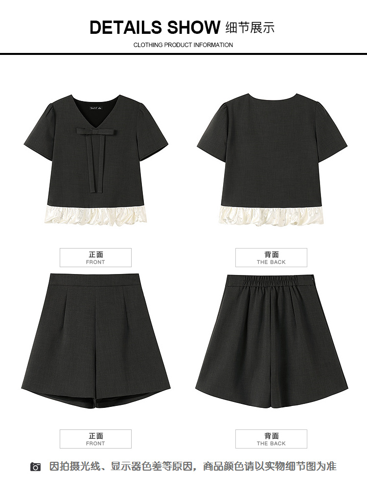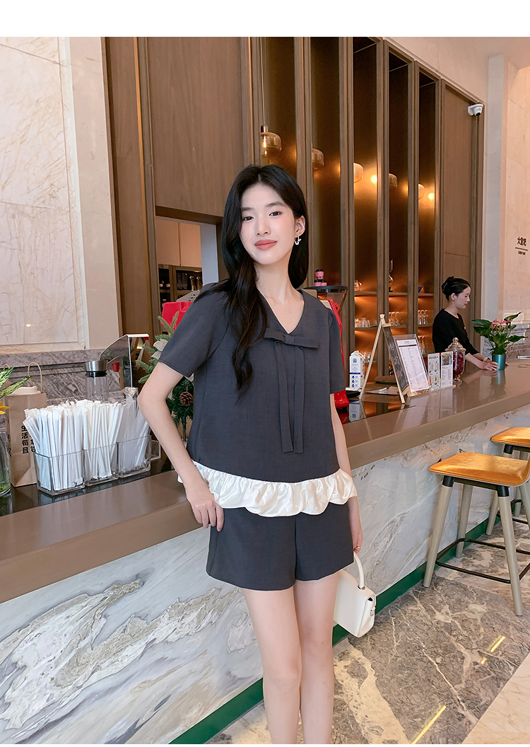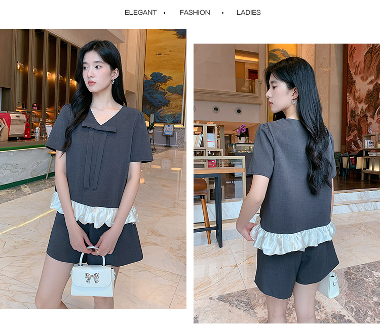 奢姿大码女装2026夏季时尚系带荷叶边套装胖妹妹简约减龄两件套装9952953540【1】
