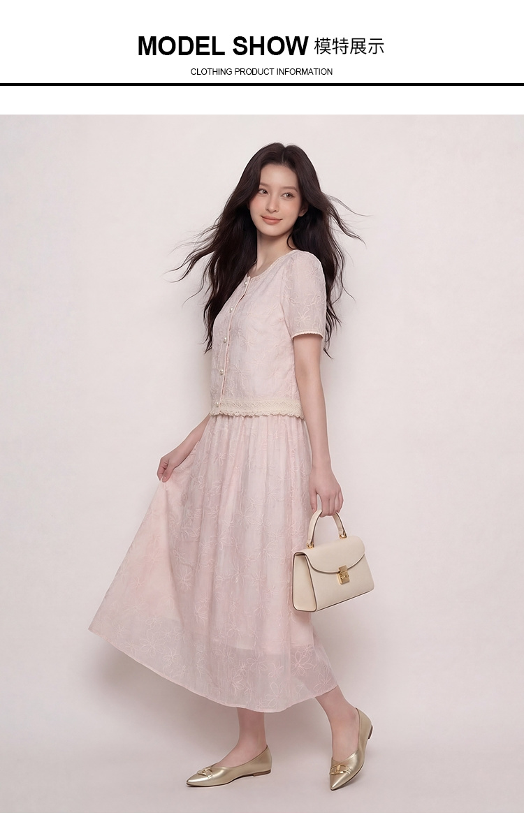 奢姿大码女装2026夏季减龄绣花圆领两件套胖妹妹名媛风时尚套装9962994545