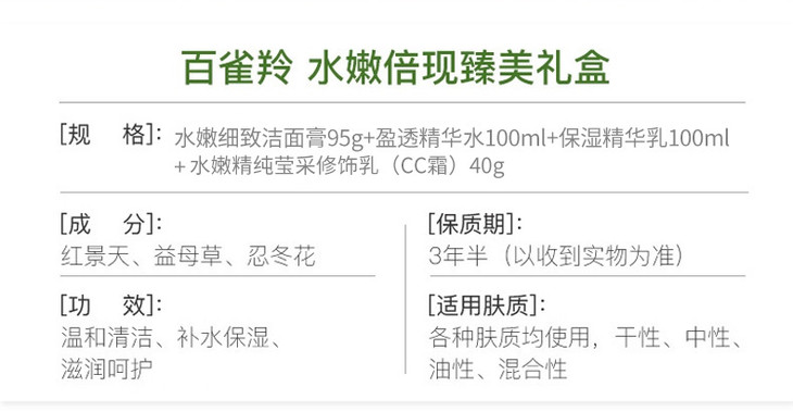 百雀羚草本水嫩倍现臻美套装(夏令)