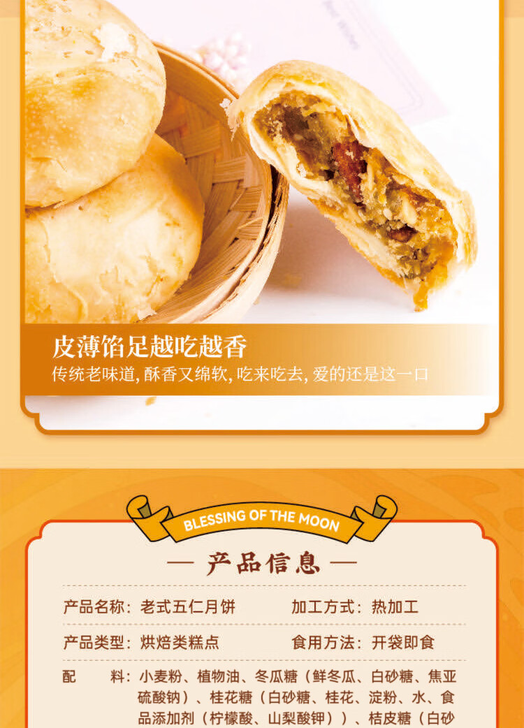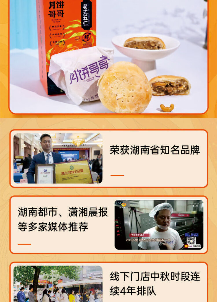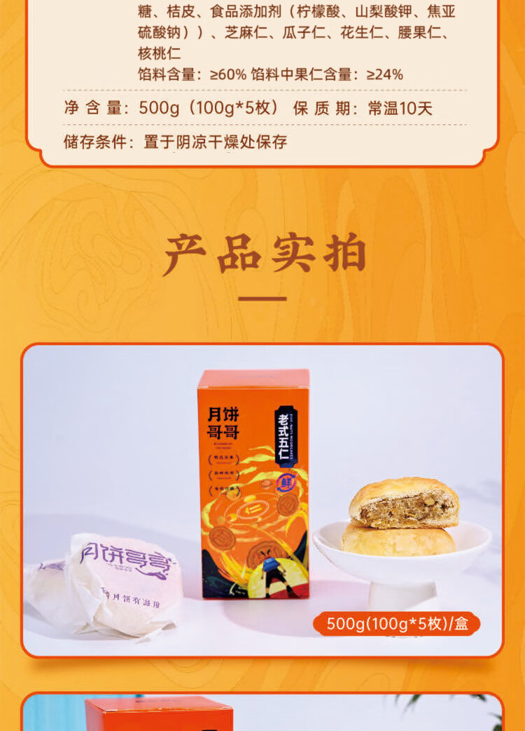 2025年中秋月饼哥哥 老式五仁 100g*5个/盒手工月饼保质期10-15天