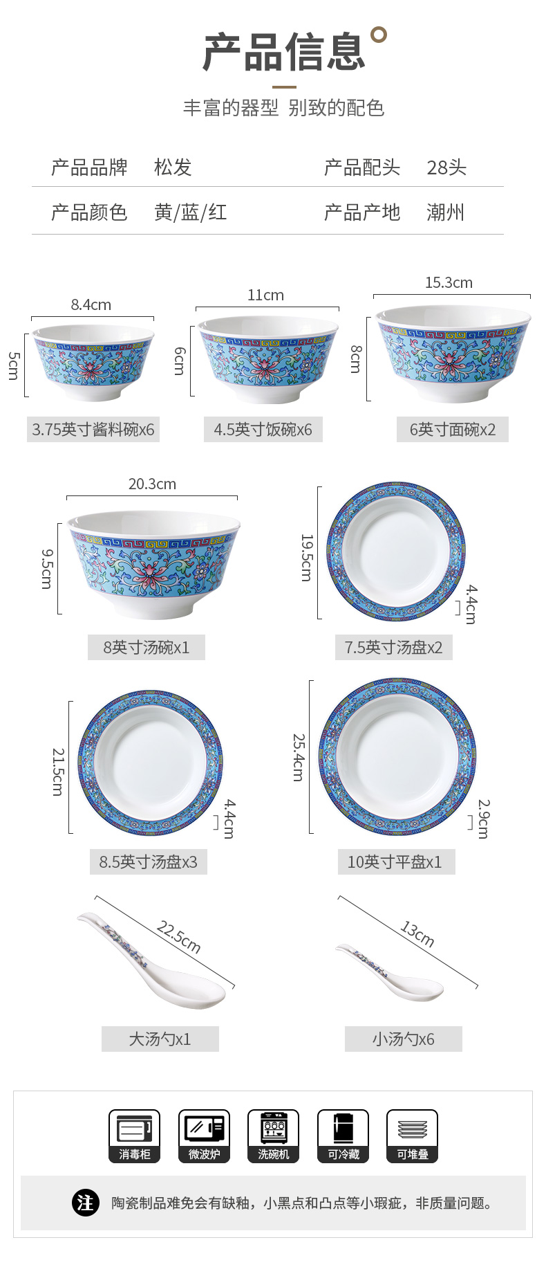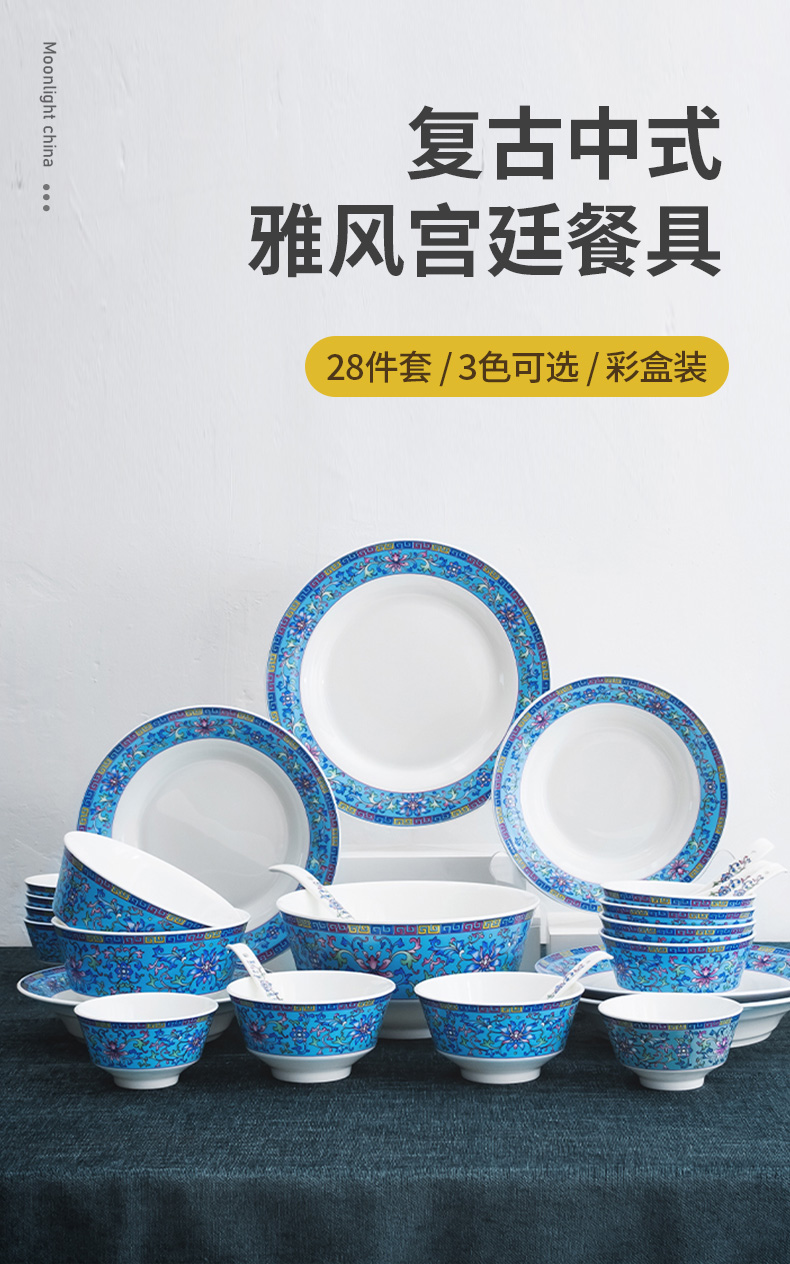 28头雅风宫廷蓝餐具套装