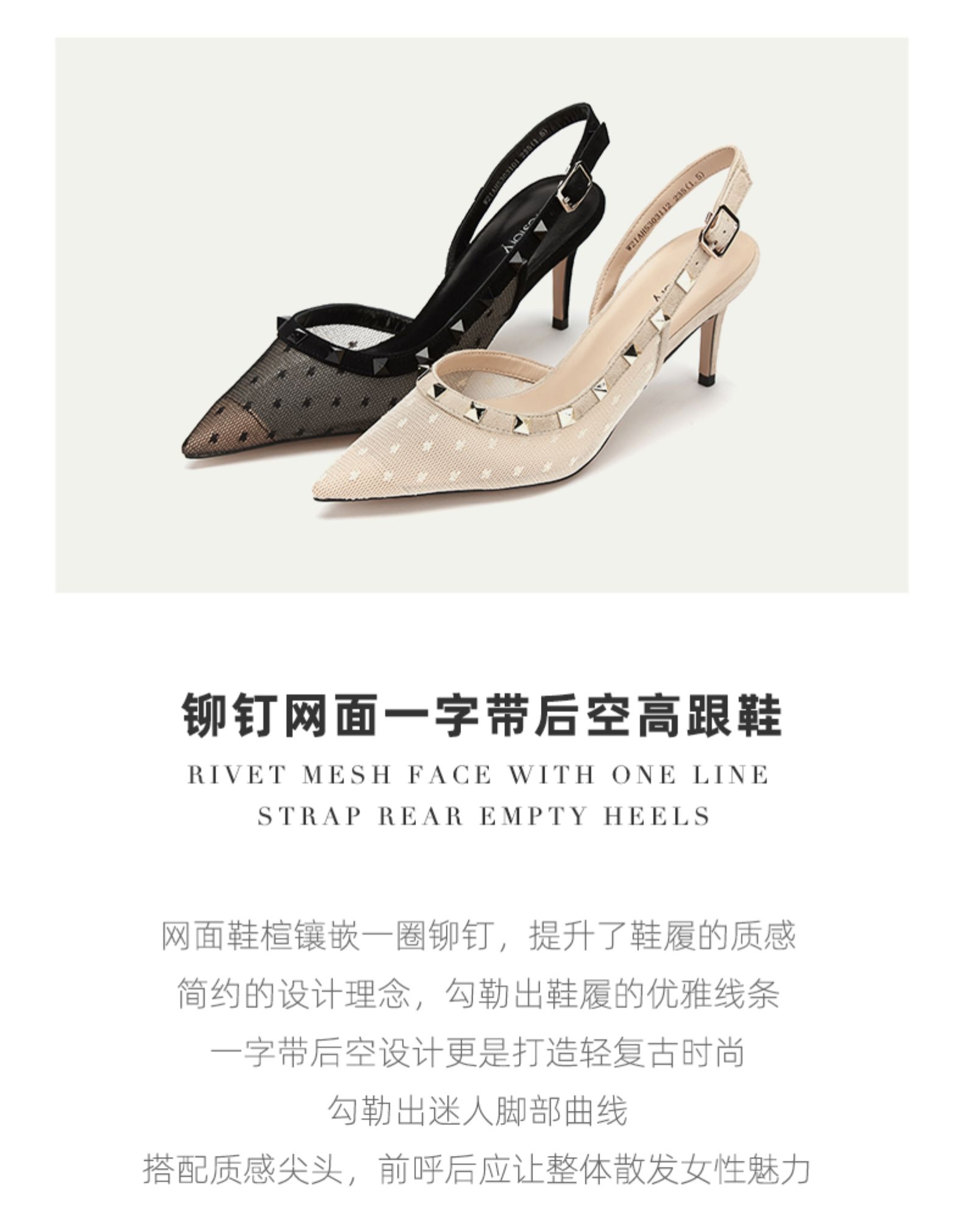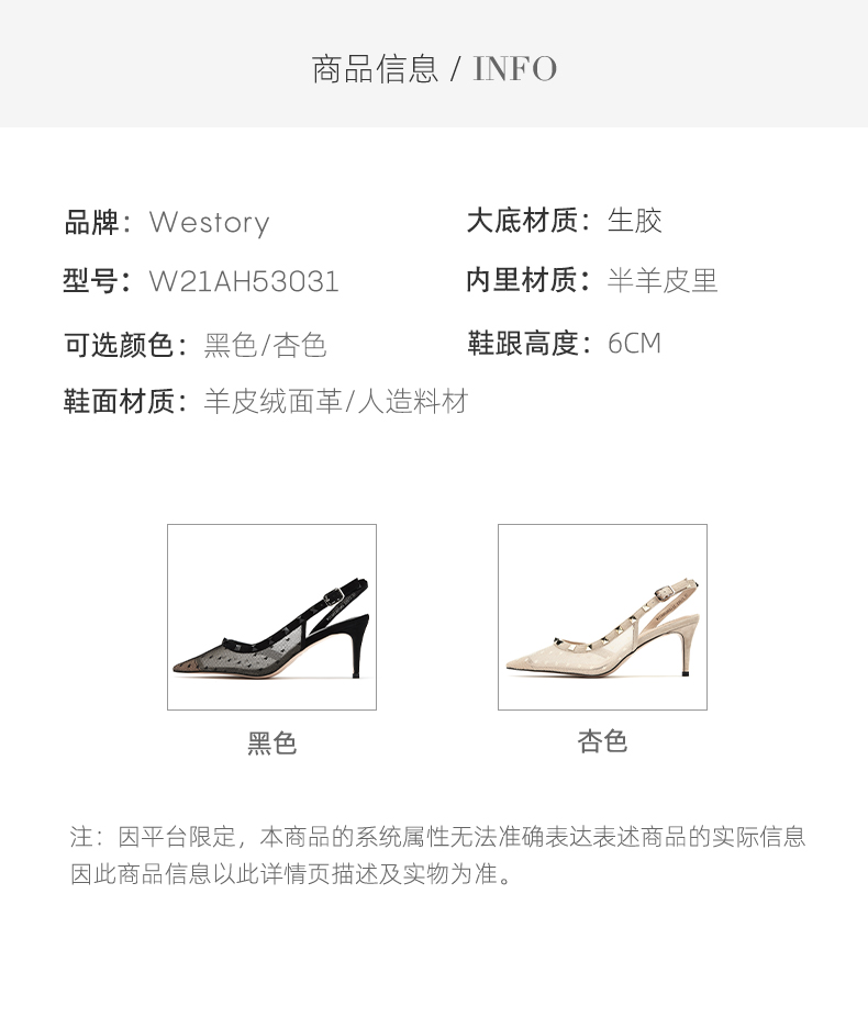 westory女鞋2021夏季新款尖头高跟鞋细跟后空包头凉鞋W21AH53031