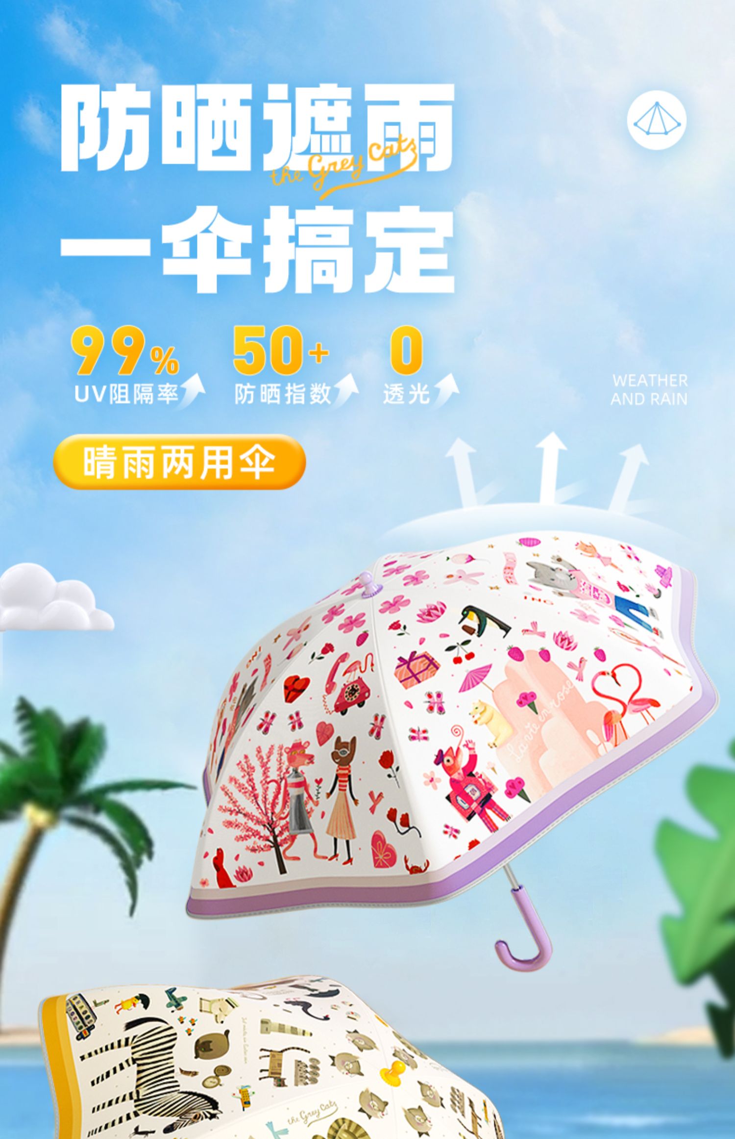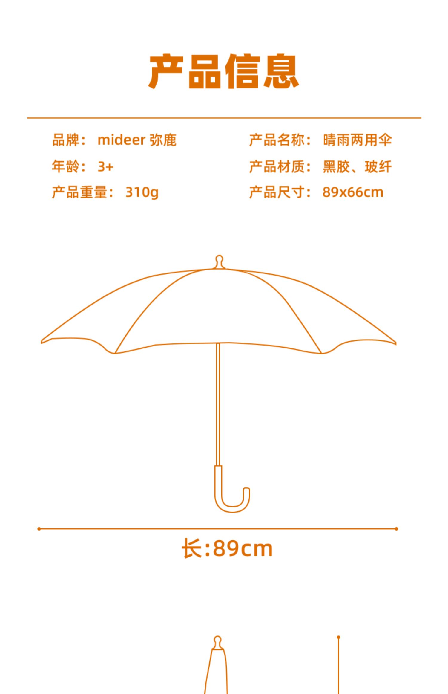 mideer弥鹿儿童雨伞幼儿园宝宝上学专用小学生防晒直柄伞3岁+