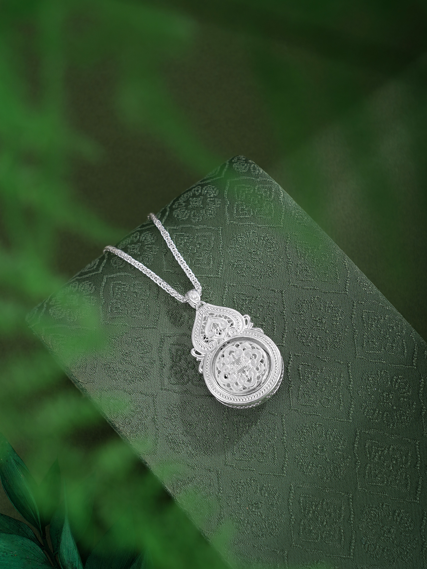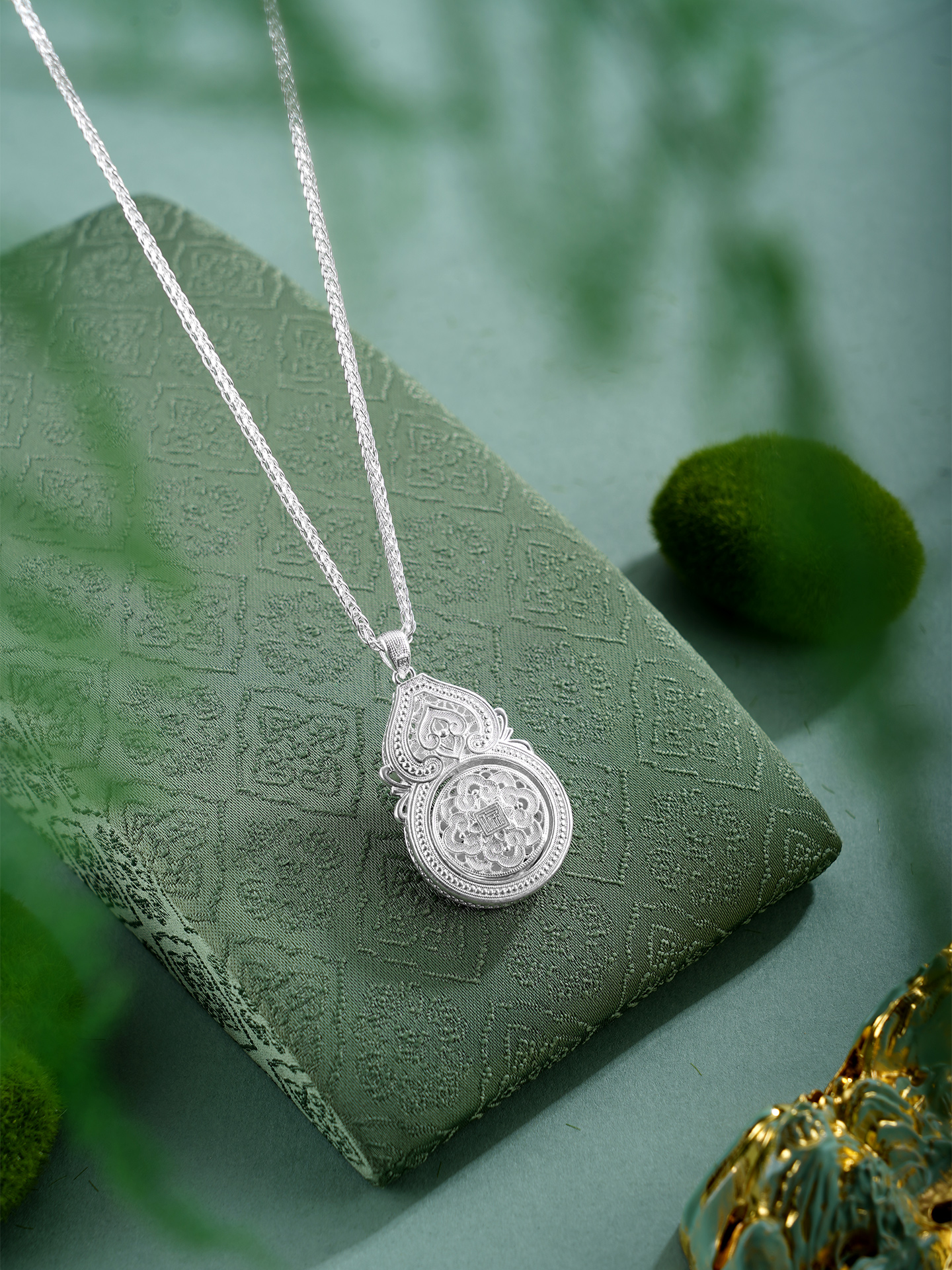 【寓意】:吊坠以葫芦为灵感设计,宝相花纹样巧饰其间,满含“福禄花开,富贵圆满”的美好祝福。