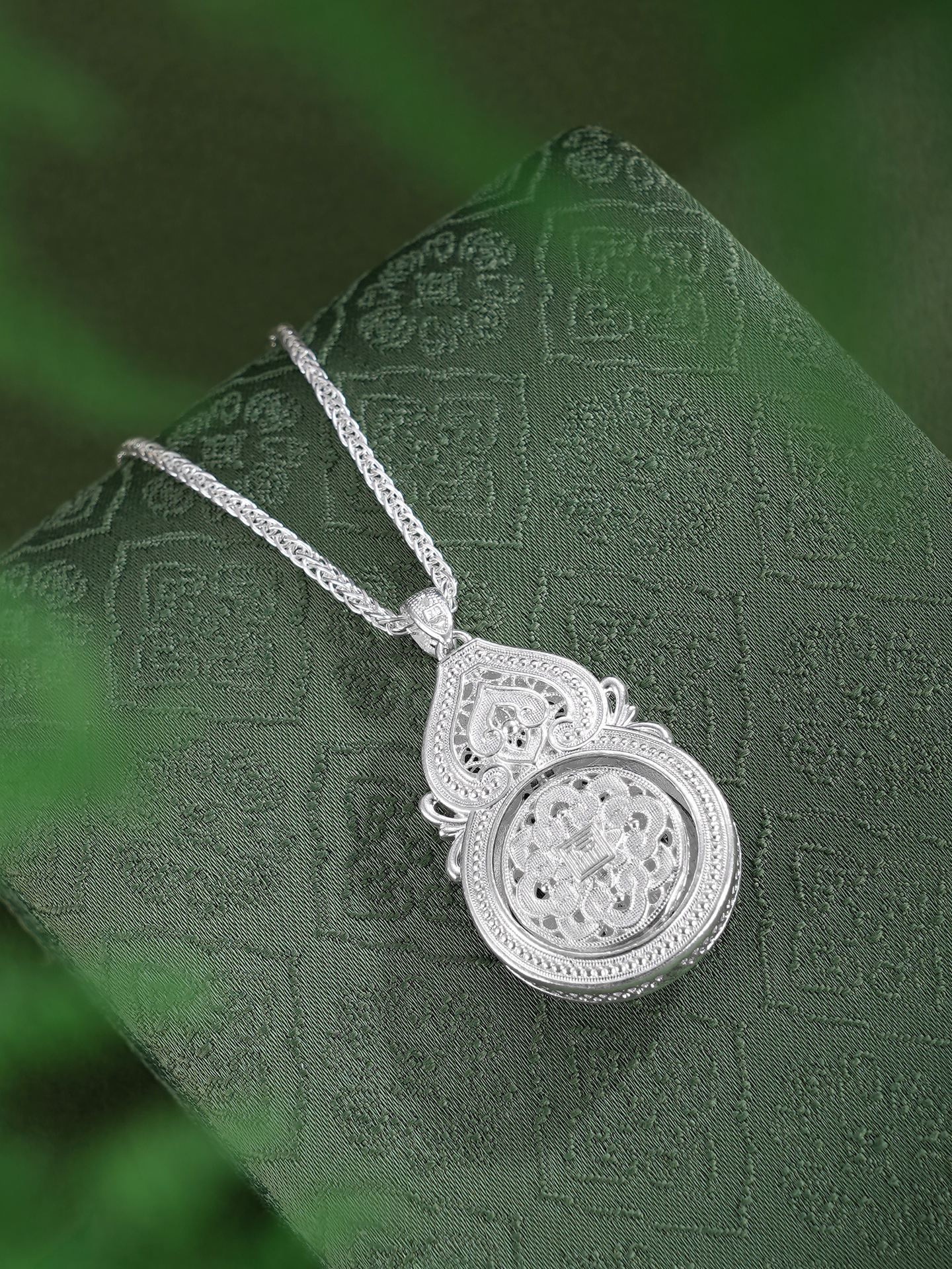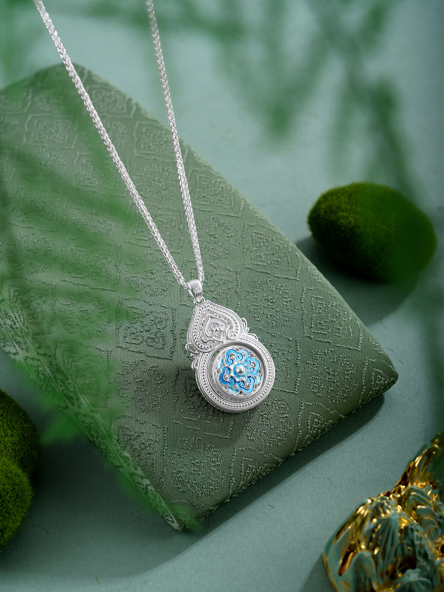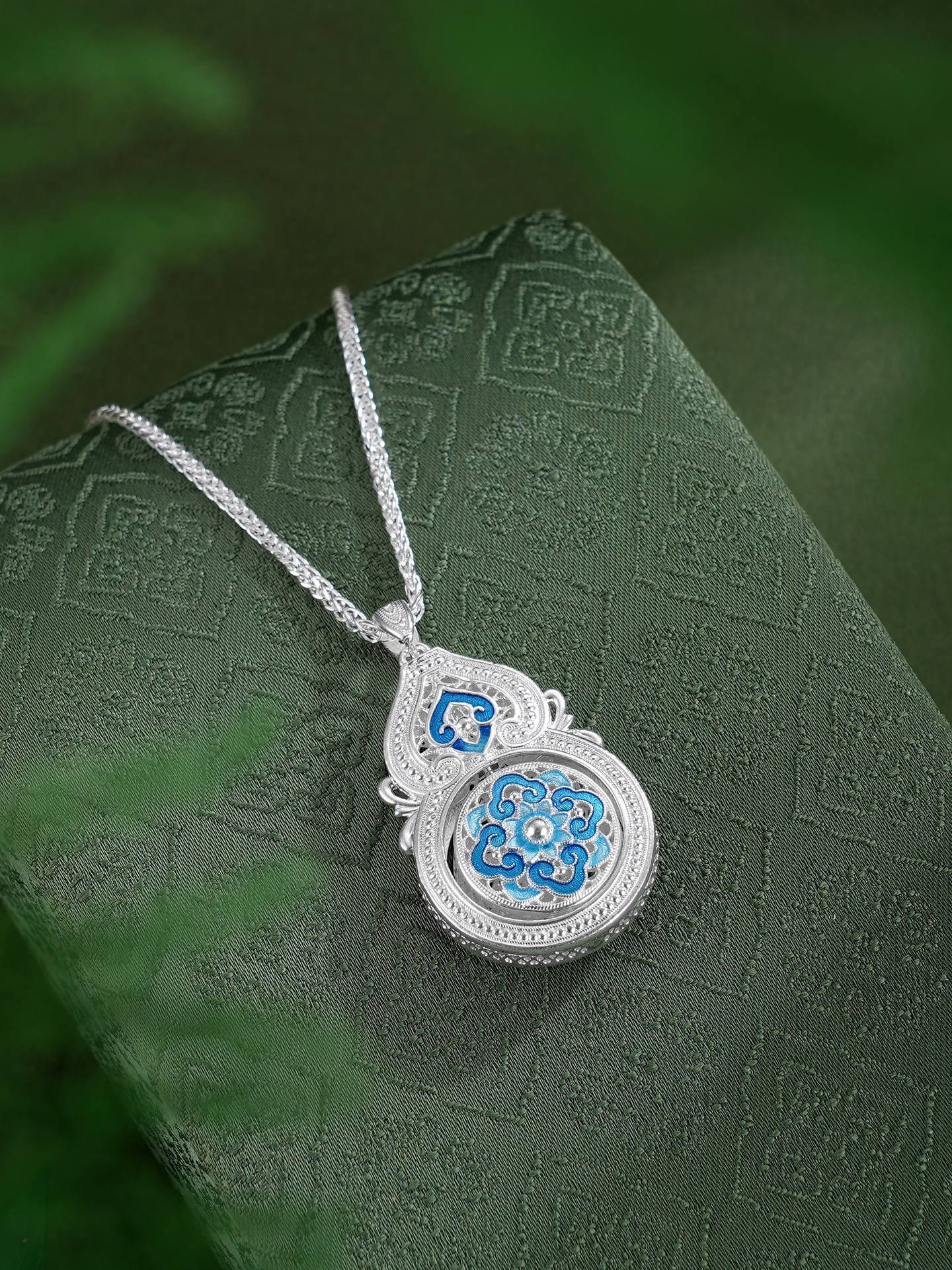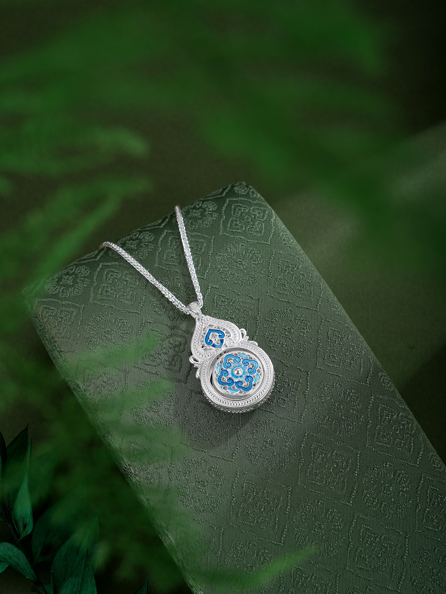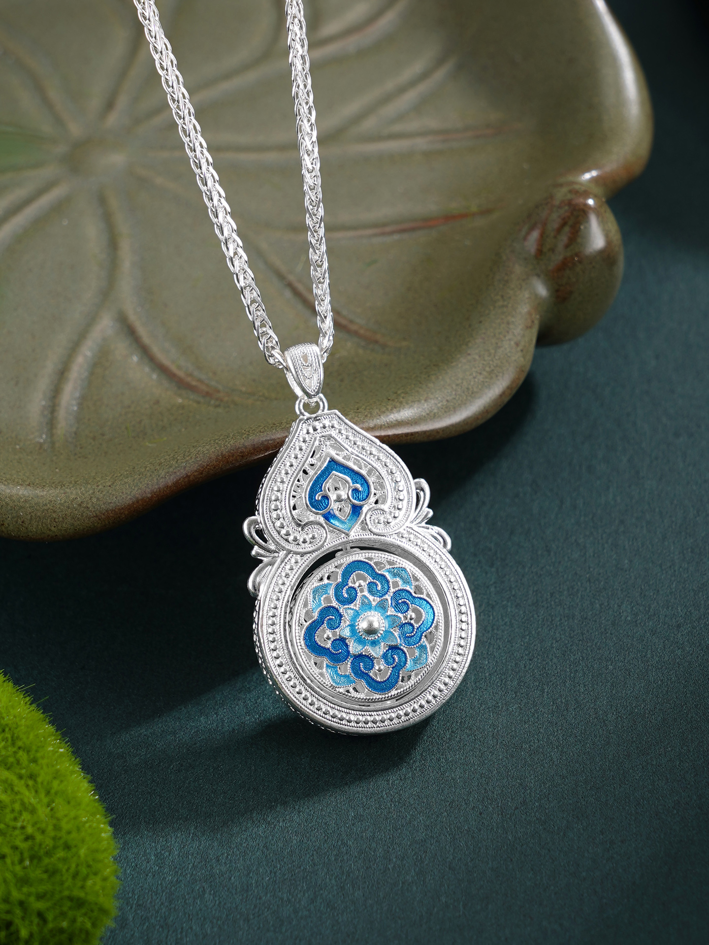子佩集【福禄宝相】银S990吊坠【QFDZ048】原创作品花丝珐琅彩可转动(不含链)2511