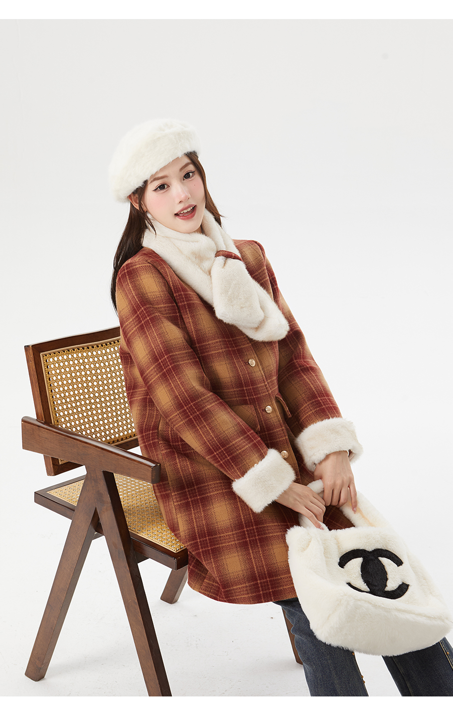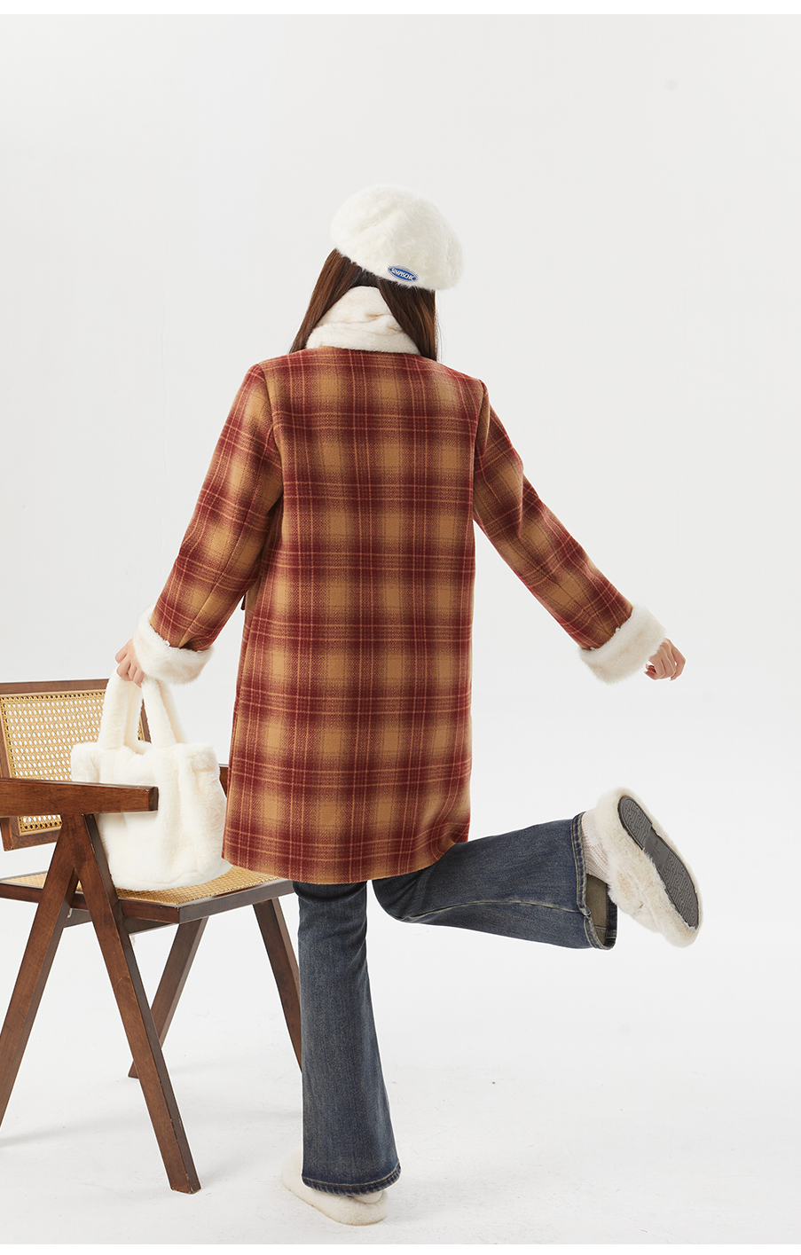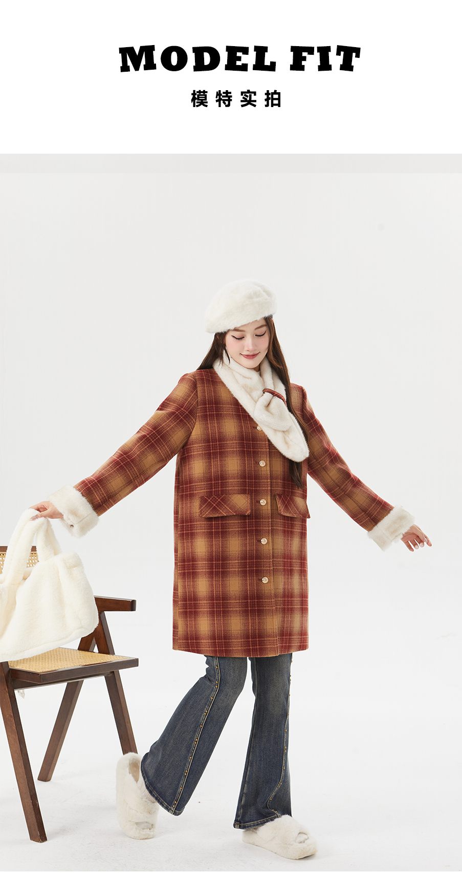 P&X设计师女装冬季格子休闲毛呢呢料中长款外套 824413195 红格
