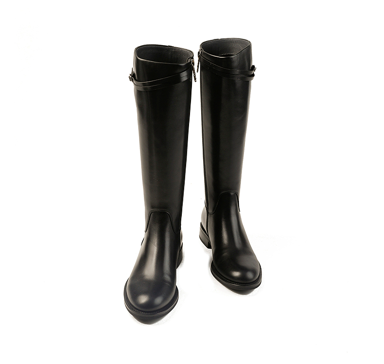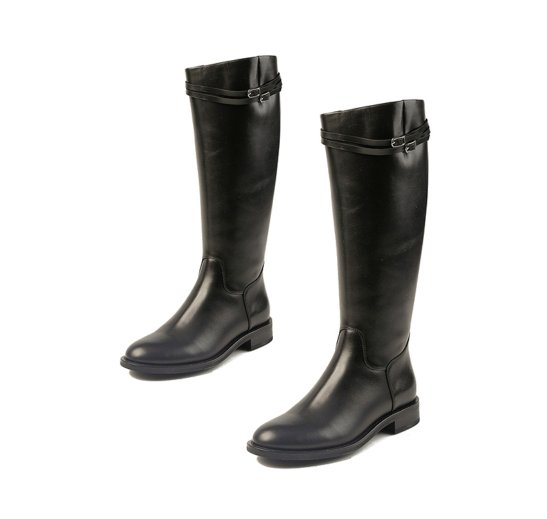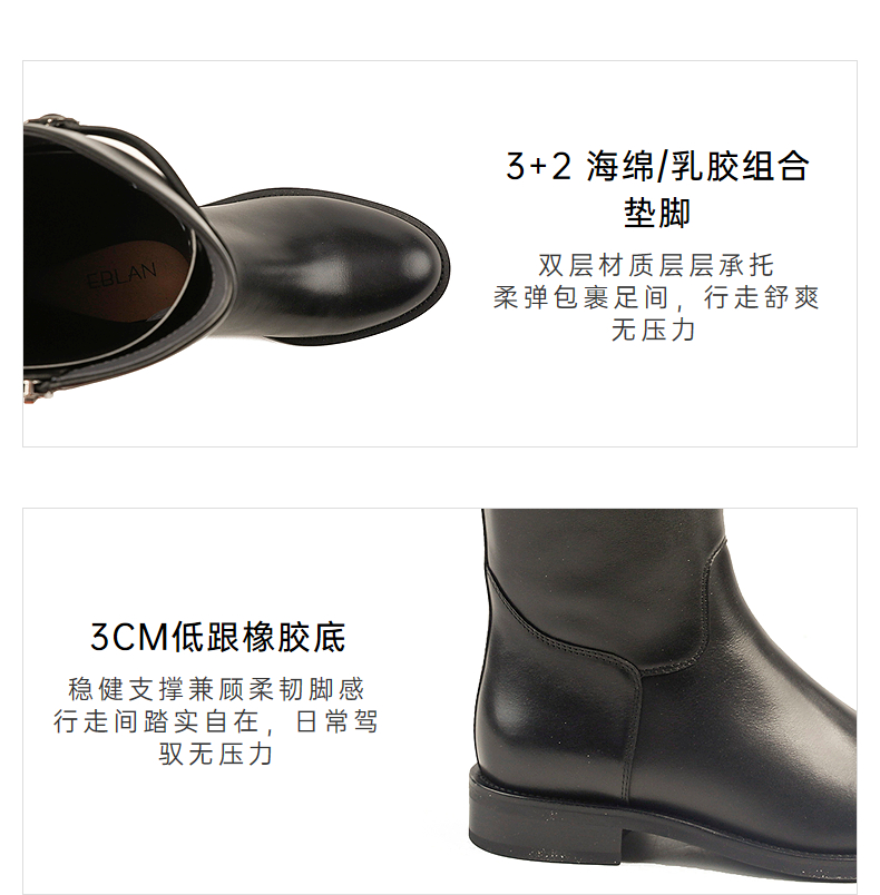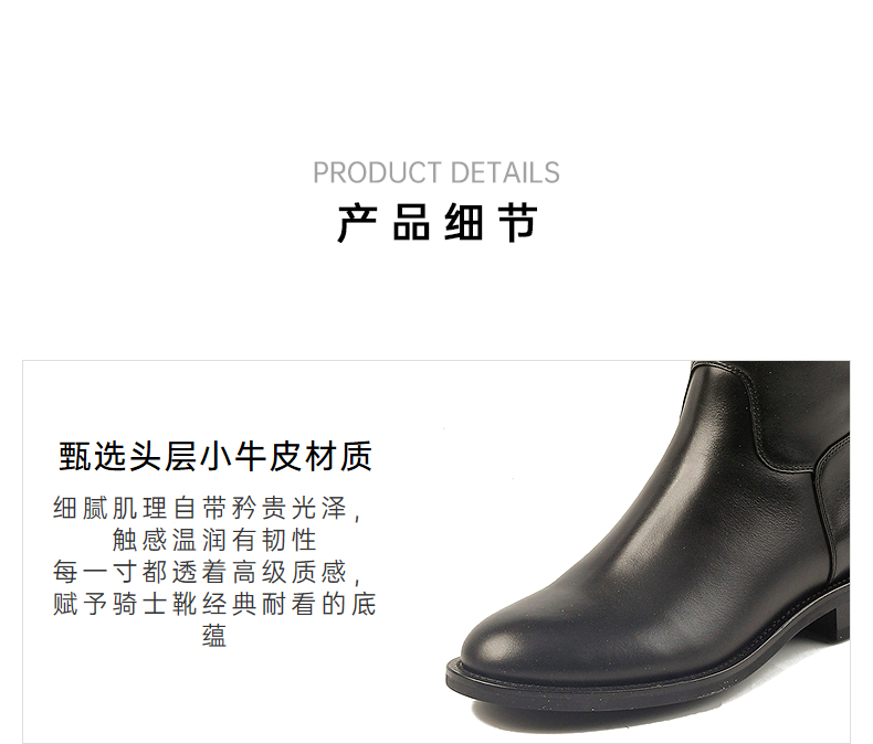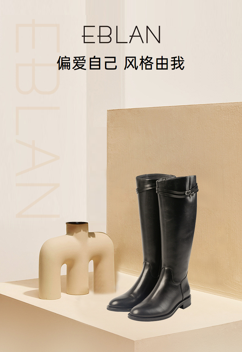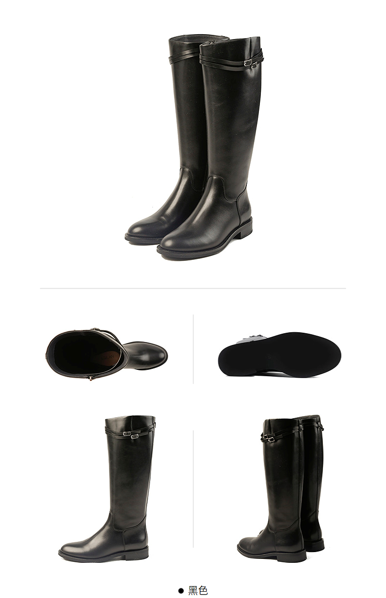 伊伴头层小牛皮材质高级百搭骑士靴经典耐看女鞋B25586312