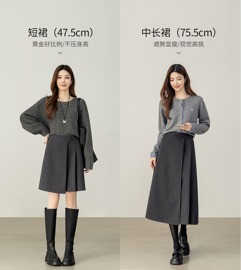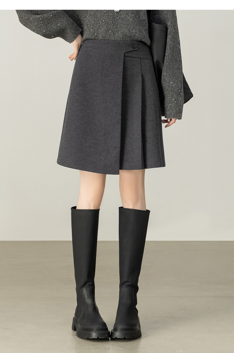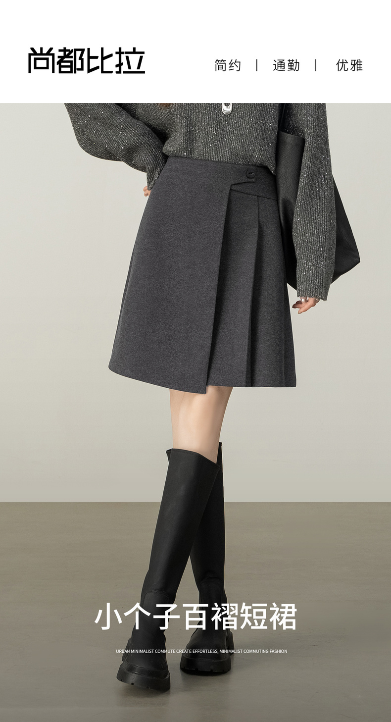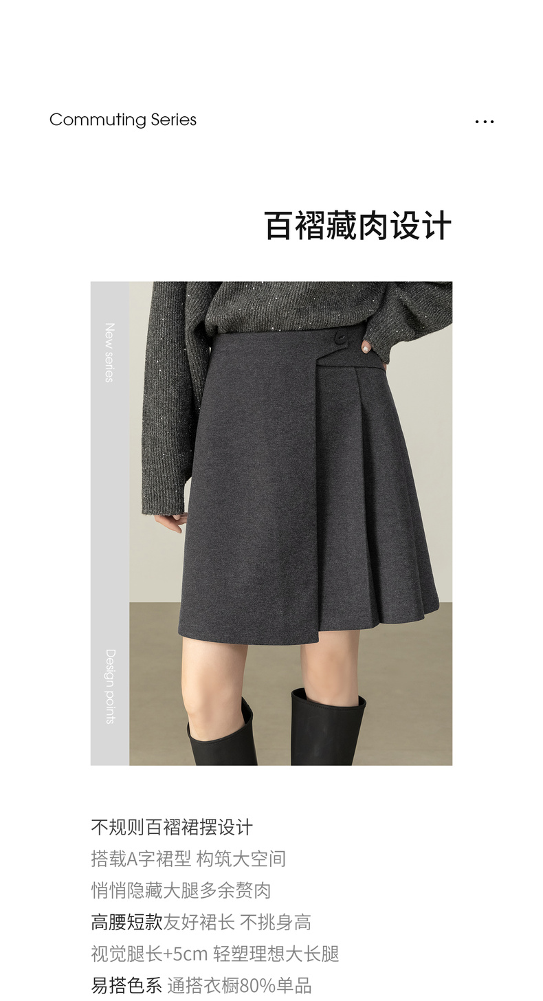 【内购】【显瘦高挑】小个子通勤高腰不规则设计厚呢子百褶短裙-154QP3745