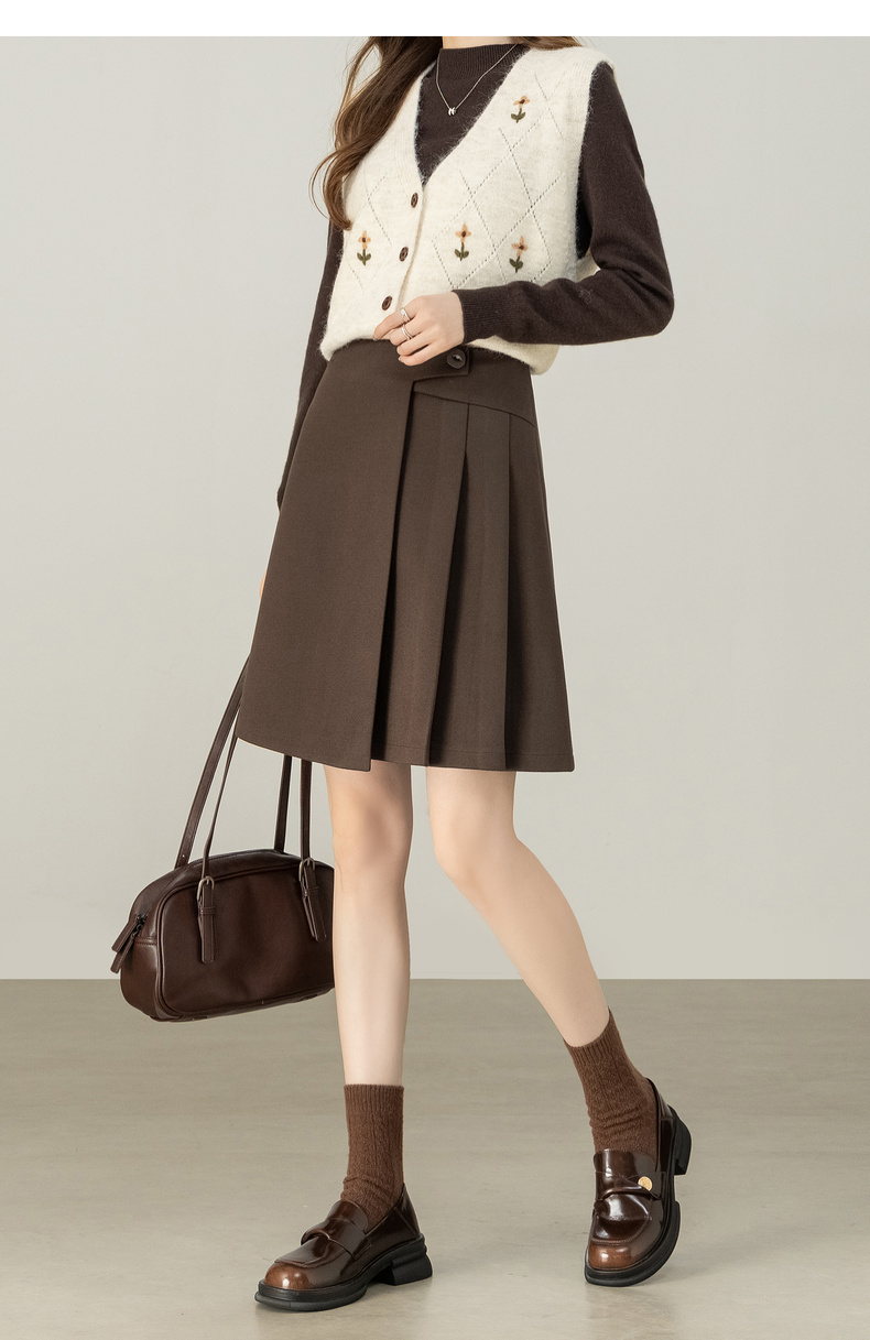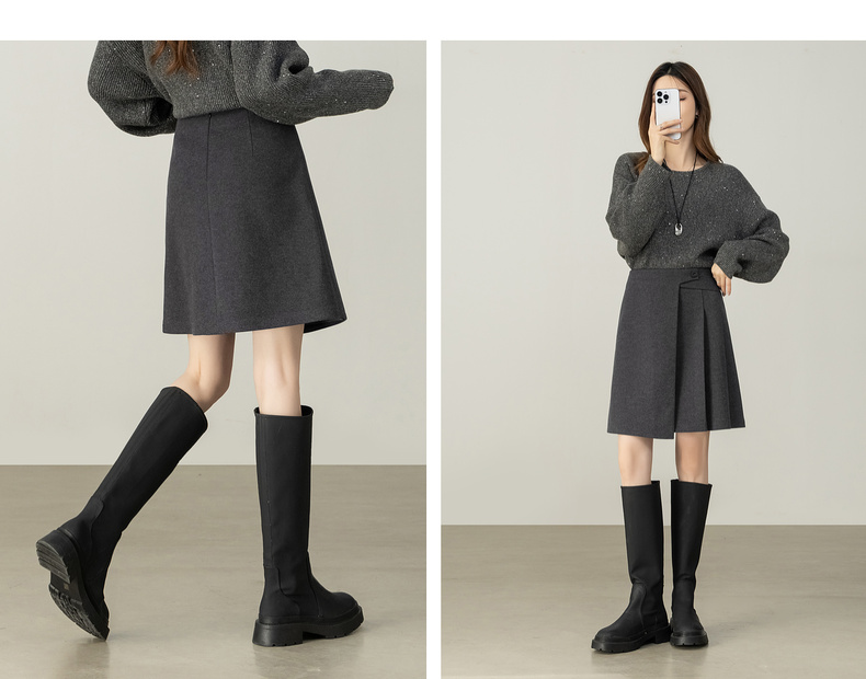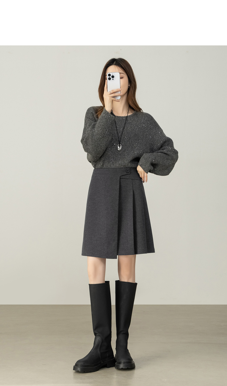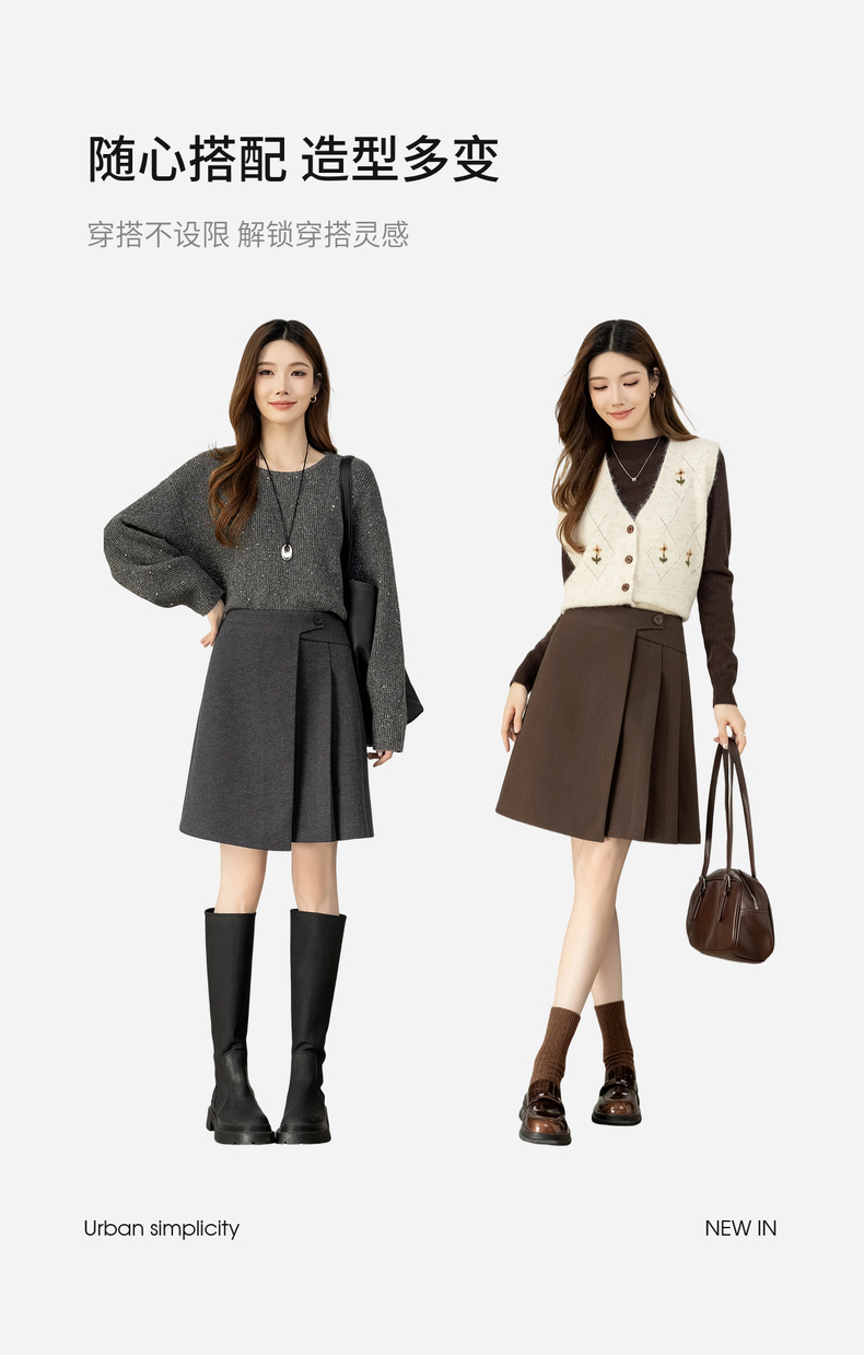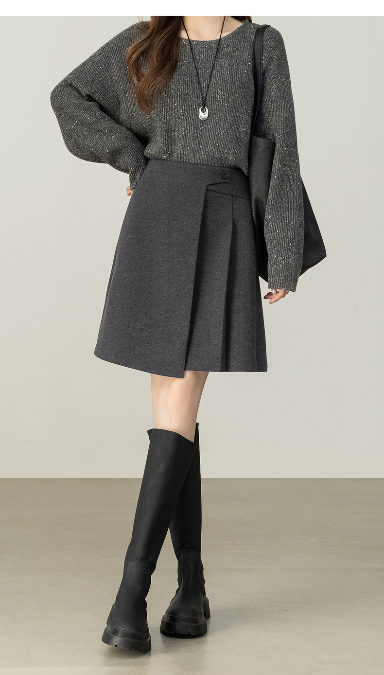 【内购】【显瘦高挑】小个子通勤高腰不规则设计厚呢子百褶短裙-154QP3745