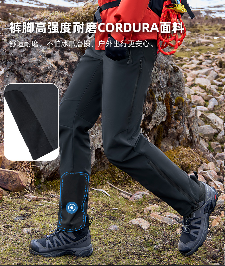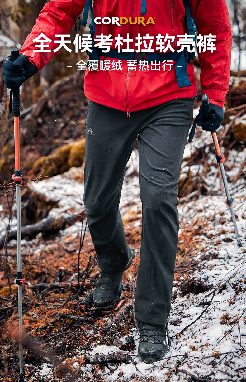 【六扇门考杜拉加绒】拓路者户外软壳裤男春秋耐磨防风防泼徒步裤