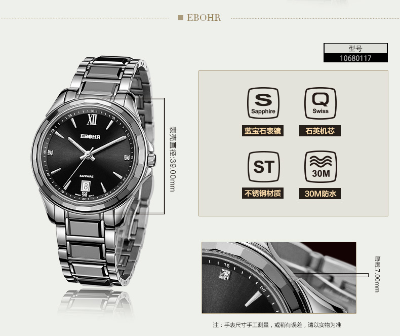 依波(EBOHR)卡纳系列简约超薄石英腕表女士手表5121