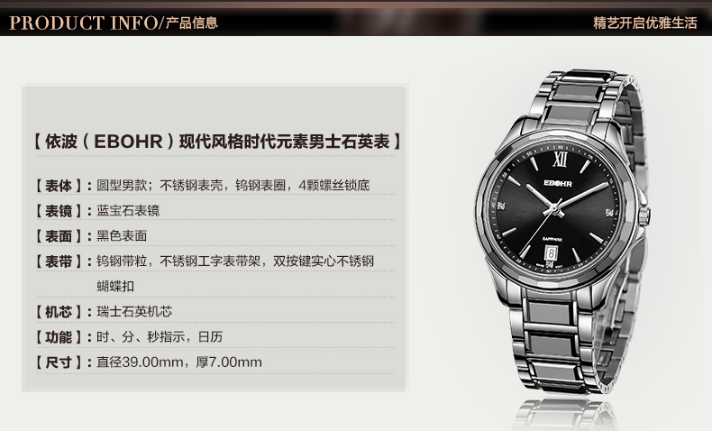 【专柜同款】依波表手表男简约商务手表钢带石英表男士手表1068