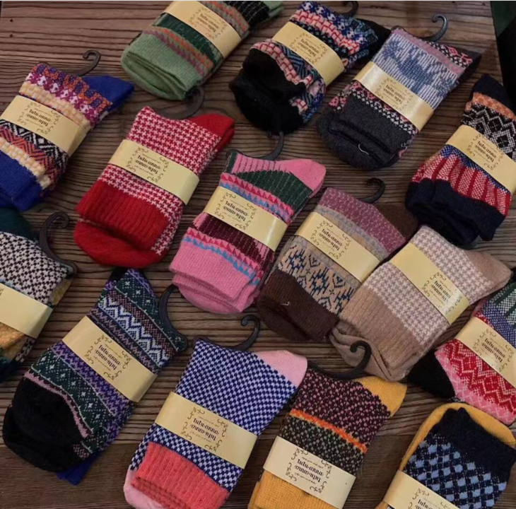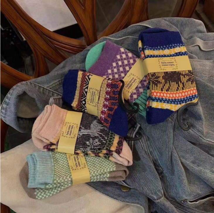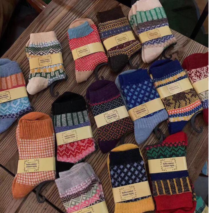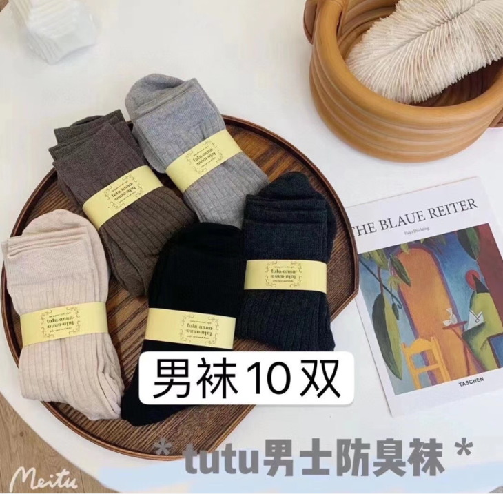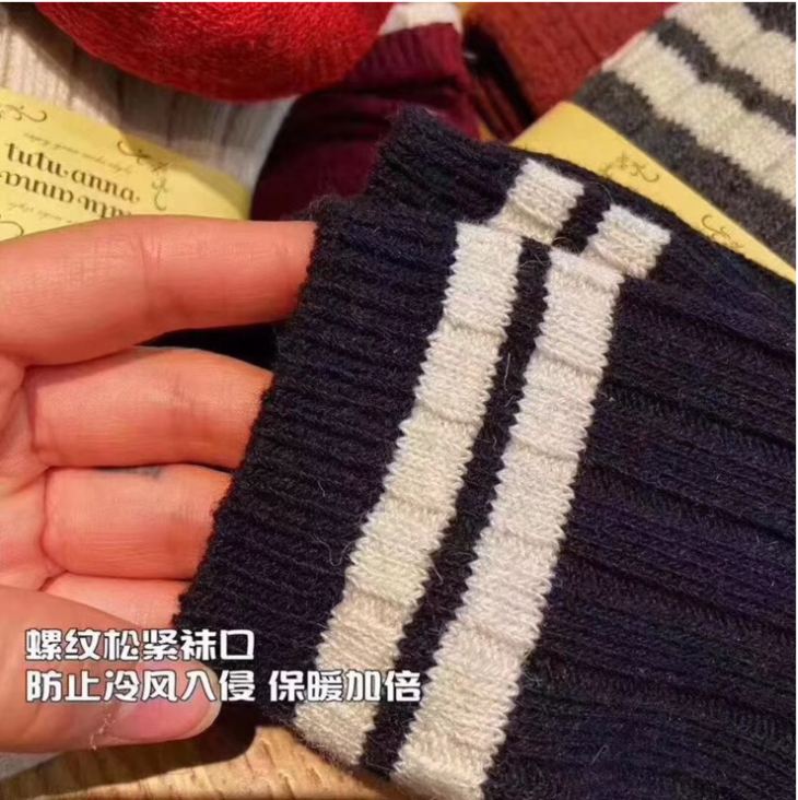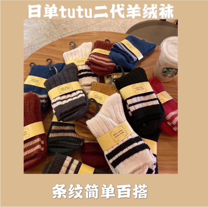 日本tutu羊毛袜图腾袜居家袜纯棉地板袜纯色条纹简单百搭一组五双十双袜子七夕情人节