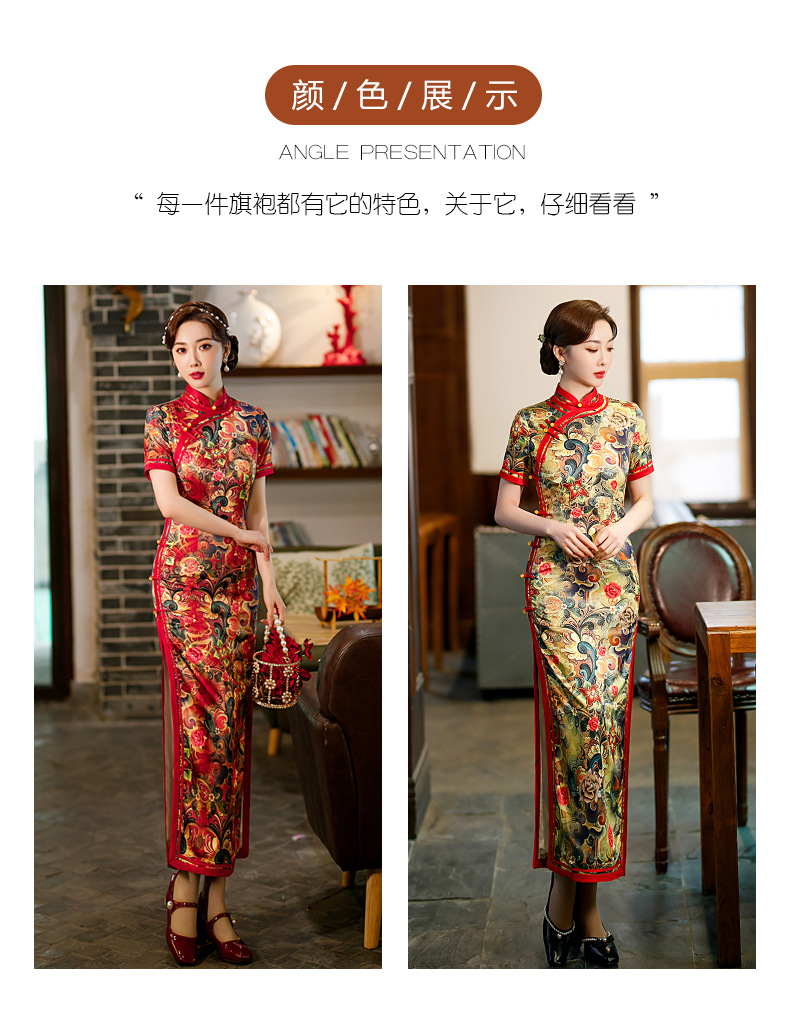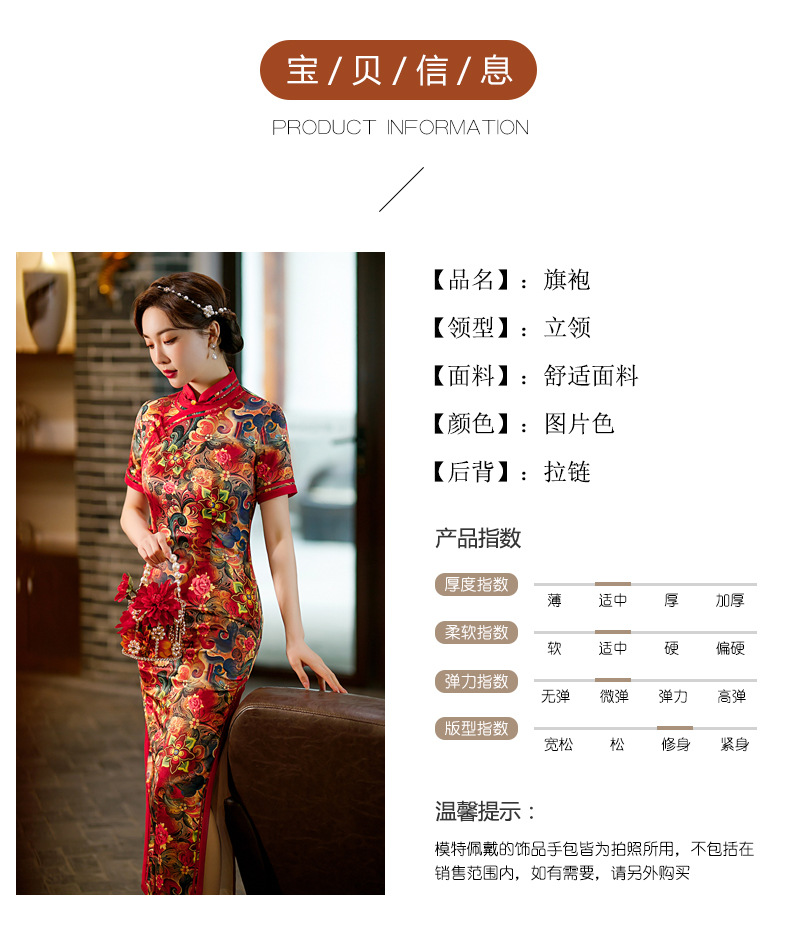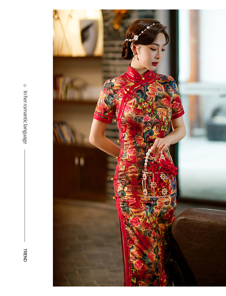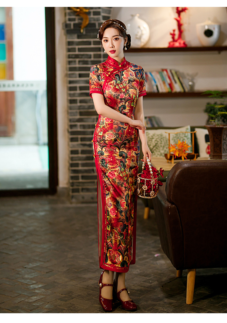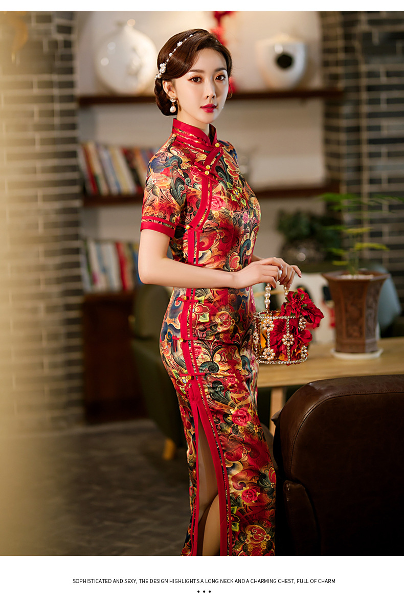 优雅修身,高开衩双层旗袍裙中国风婚礼敬酒服旗袍CX-0649