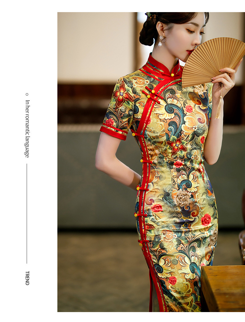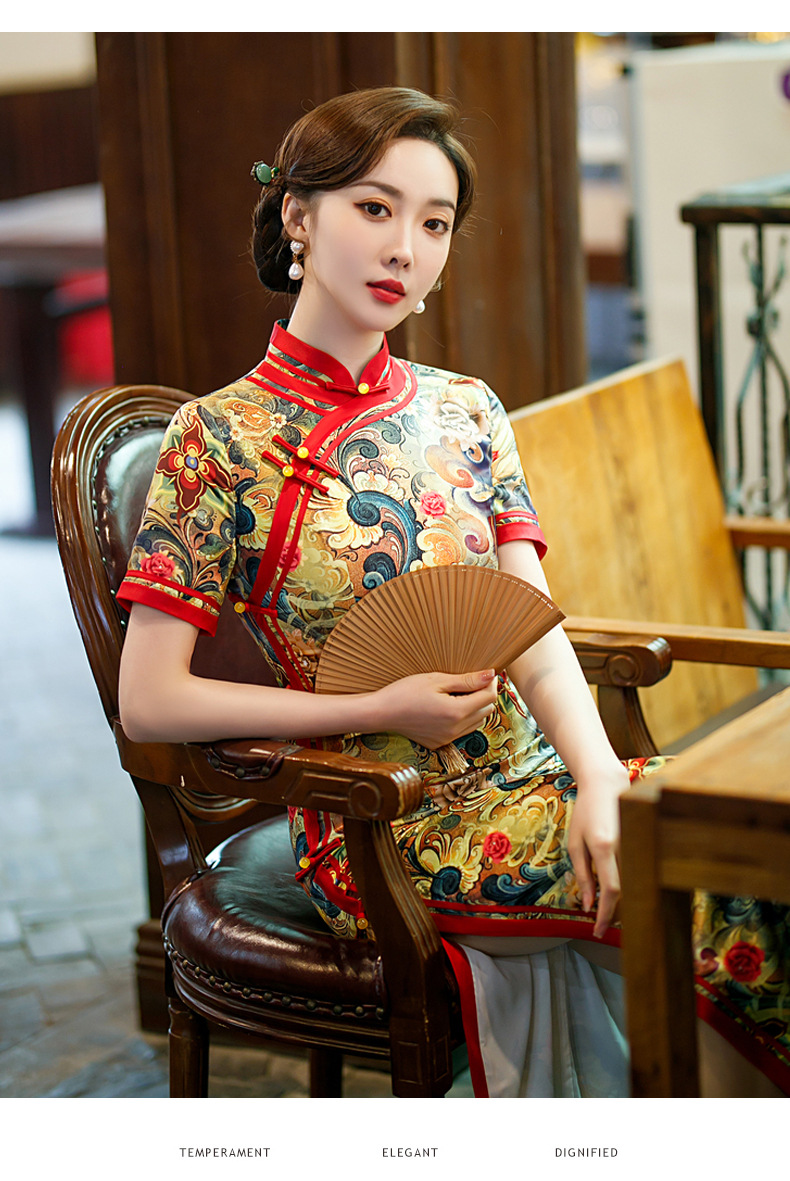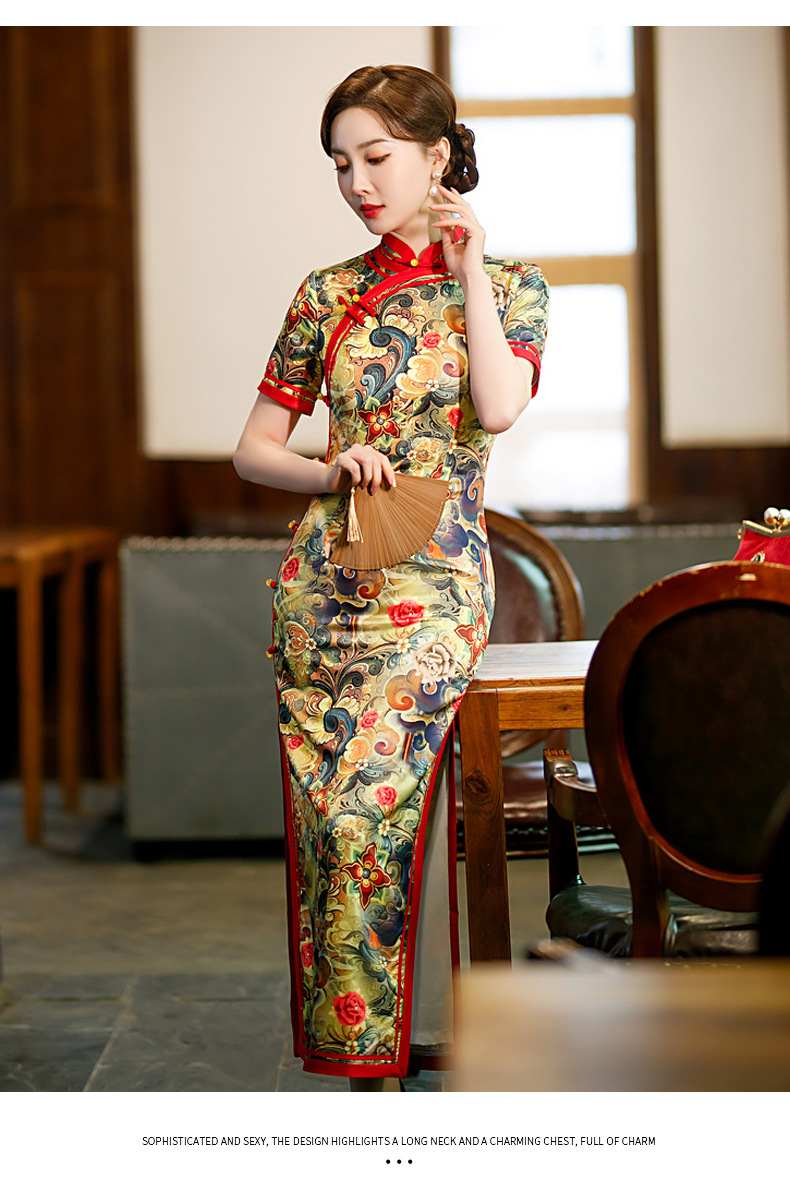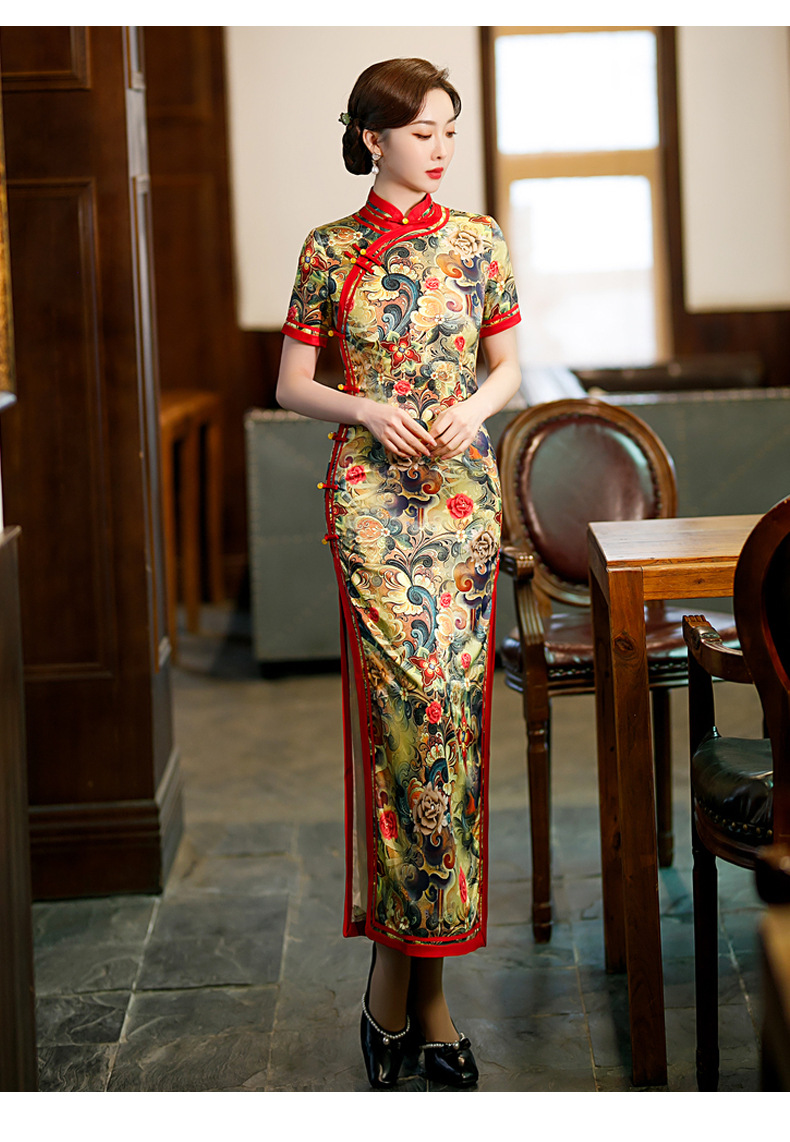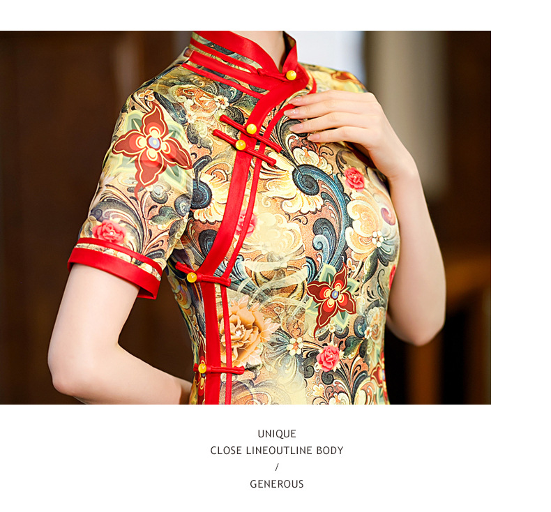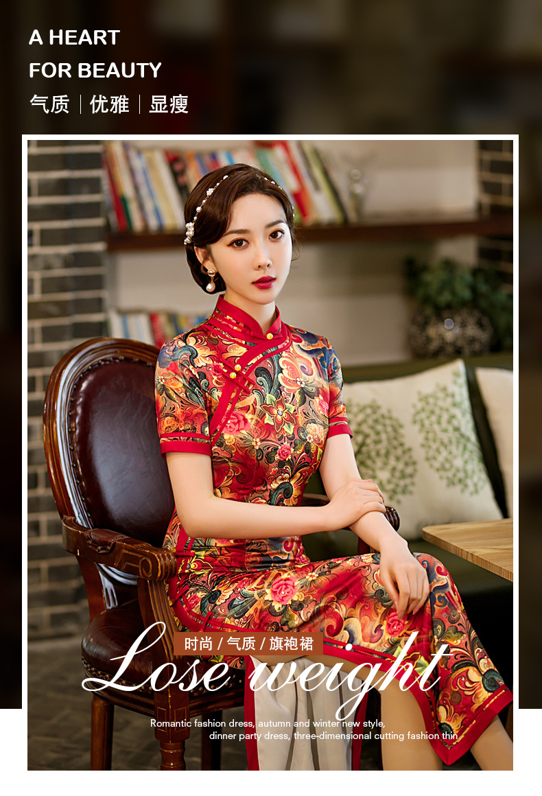 优雅修身,高开衩双层旗袍裙中国风婚礼敬酒服旗袍CX-0649