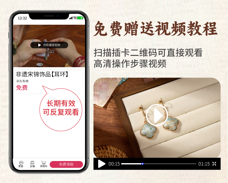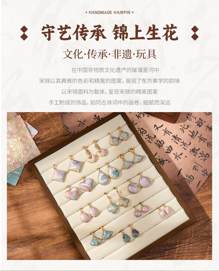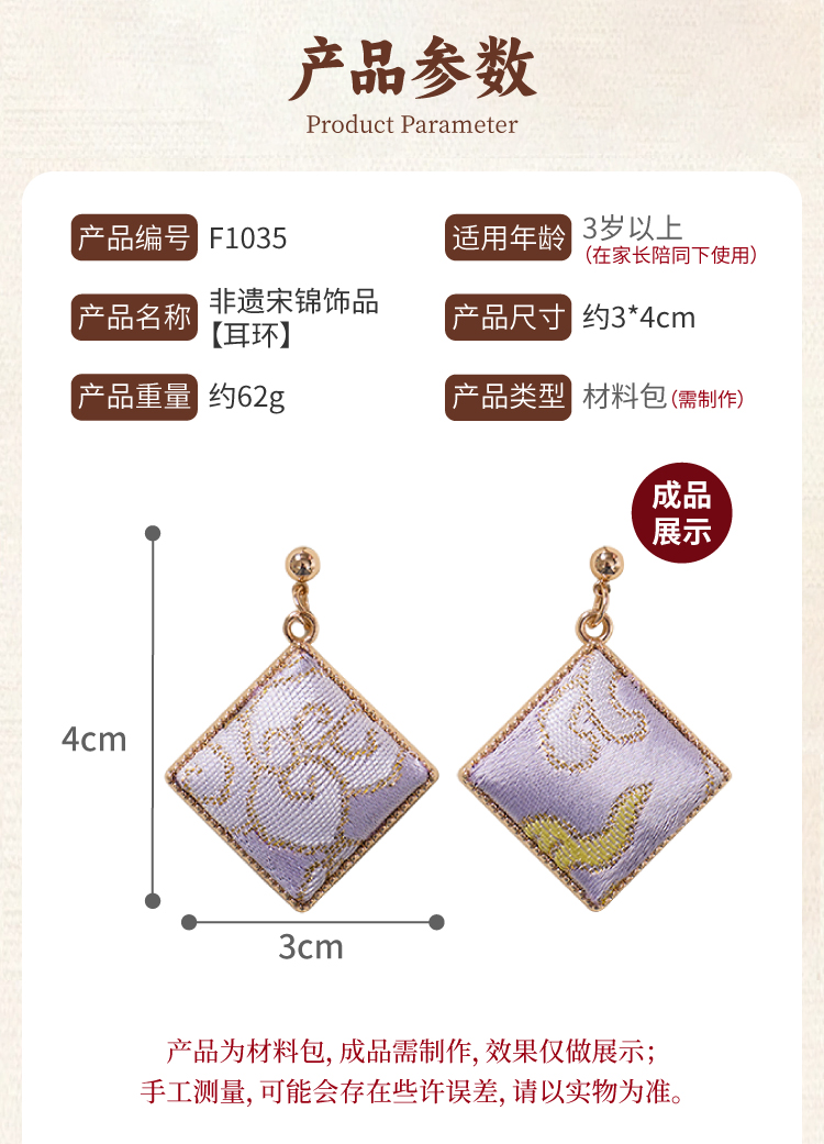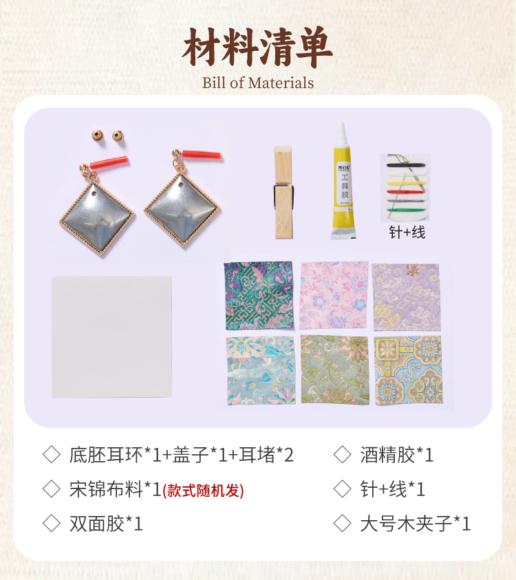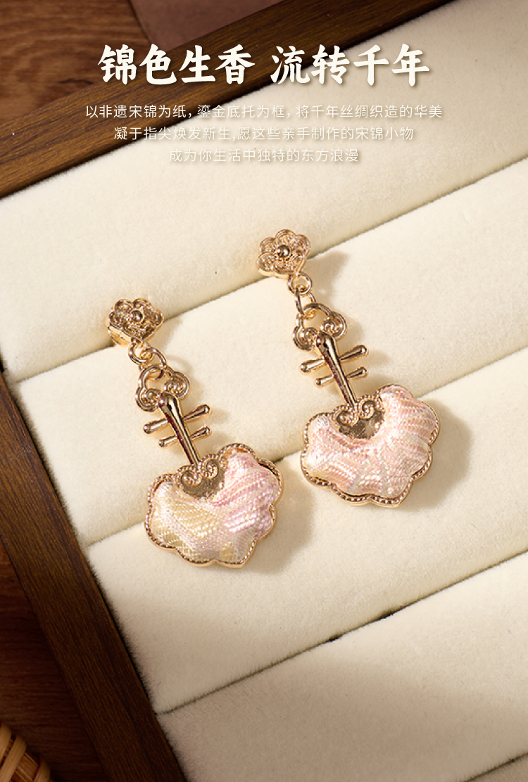 重阳节非遗宋锦耳环手工diy耳坠耳饰中式首饰品儿童材料团建活动