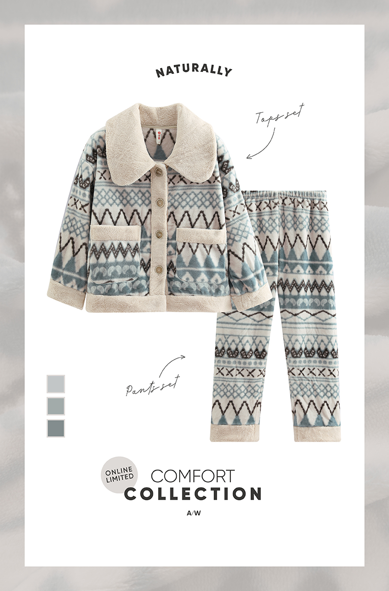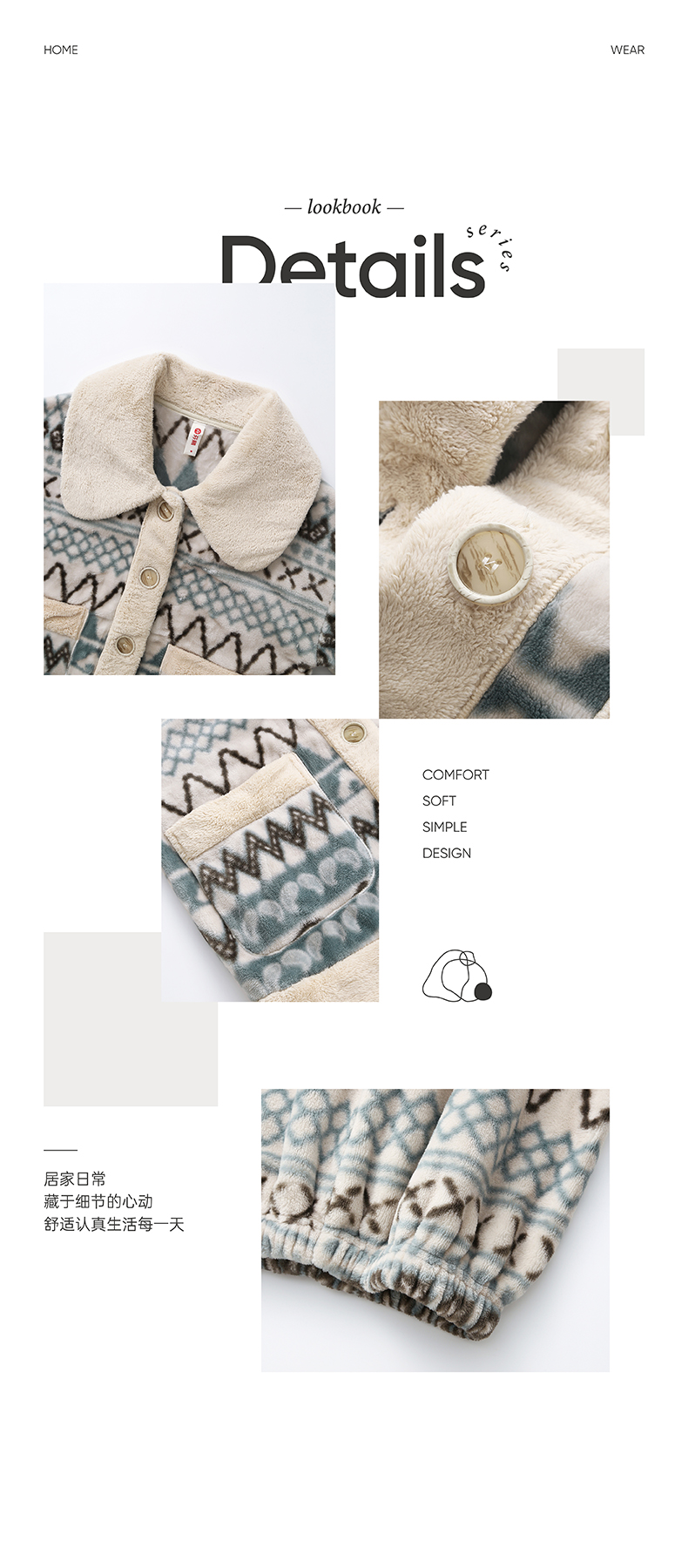 芬腾珊瑚绒新款睡衣女秋季加绒加厚波西米亚风可外穿家居服套装