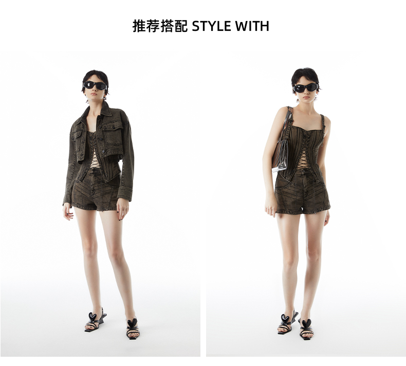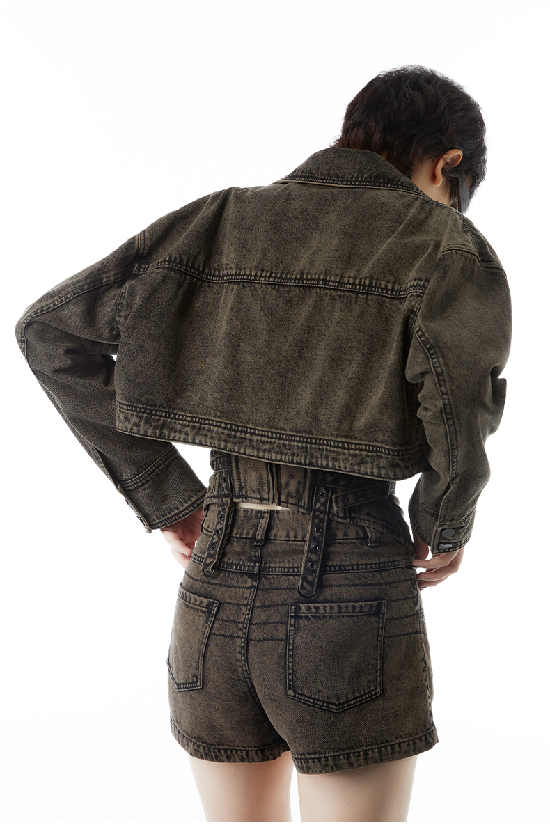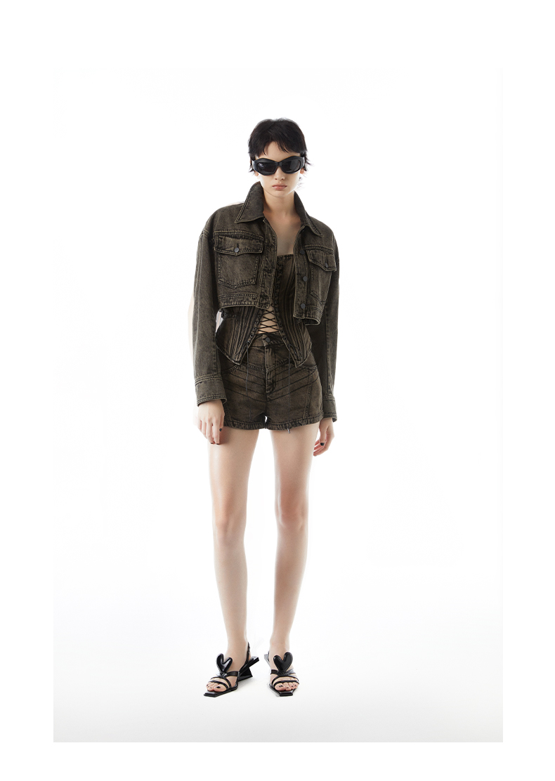 lost in echo设计师品牌Ari系列雪花重工做旧牛仔外套短裤套装女