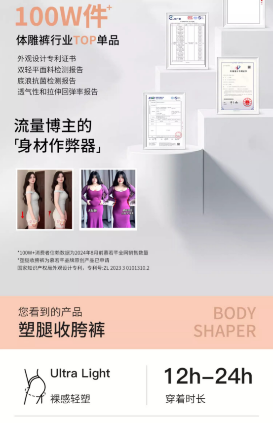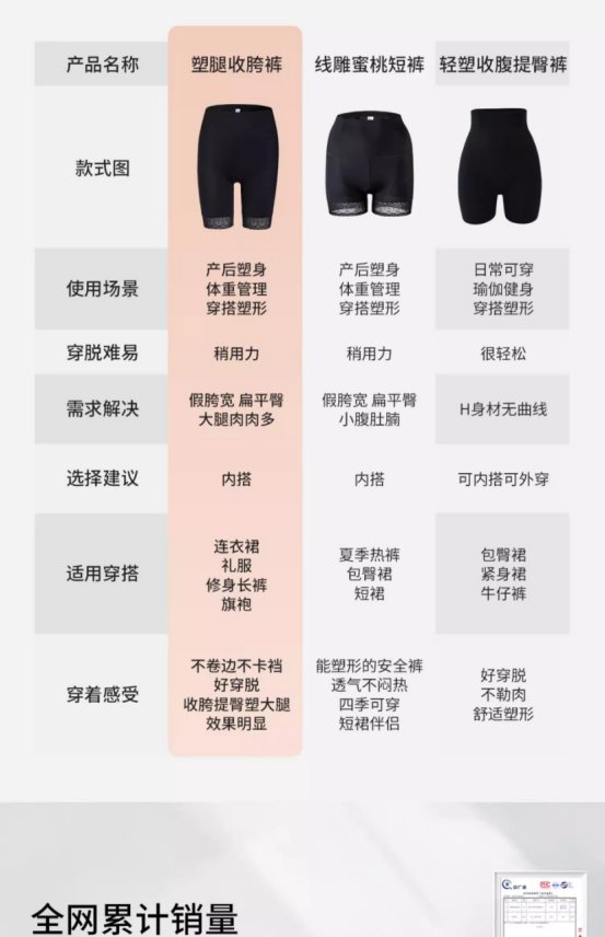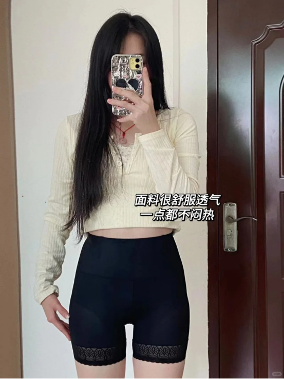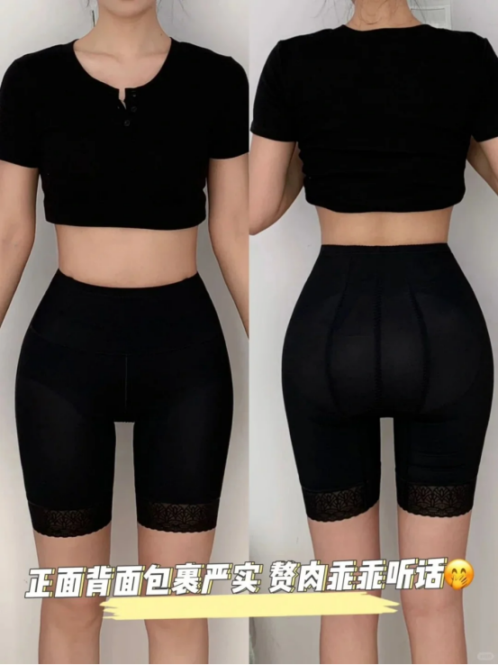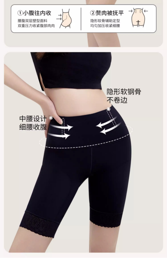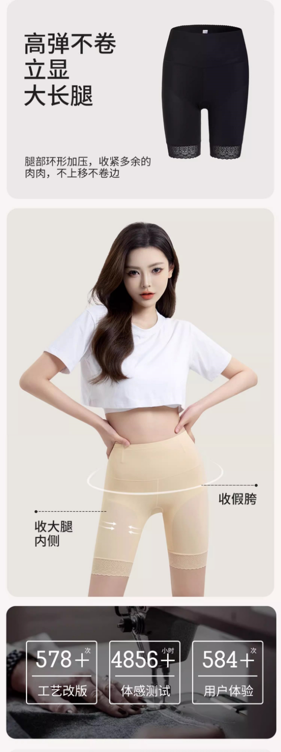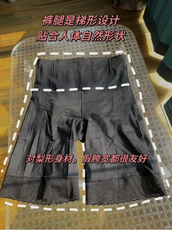 ①3D立体剪裁,对胯部大腿内侧重点施压,强效收胯,紧致塑形 ②全车缝工艺,臀部做了3W臀模设计,即三条提拉线是根据人体工学原理, 做了不同褶皱点的定位施压,更考验车工师傅的手艺,上身一提一拉, 哪怕是超A的臀部也能自然圆润饱满的翘臀。 可以穿前拍下,穿以后拍下,明显臀部上翘45°,提高臀位,显腿长 ③腰部加宽防滑设计,上身收紧小腹脂肪同时防滑防卷边! ④纳倍洁纤维底裆,可贴身穿,3A级抗菌抑菌(有抗菌报告), 底裆是做的U型设计(市面上大多数底裆是做的方形的,这样贴身穿的时候容易三角区不适), u型可以更好贴合女性私处部位,防卡裆掉裆 ⑤腿部创拼接扇意风情之花(专利版权), 很好的根据腿围大小吸附大腿的肉,塑腿防卷边上窜