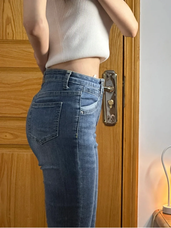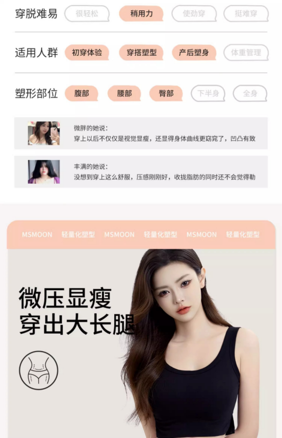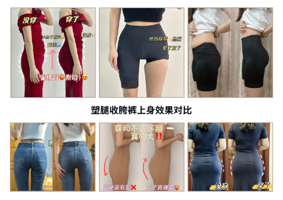 (解决痛点]: 上班久坐以后,大家有没有发现 小肚子越来越大,屁股也扁塌 显得腿短背影像大妈 产后妈妈还要更辛酸 要面临肚皮松松垮垮、胯部变宽,臀部下垂,大腿肉松松垮垮 修身的裙子不敢穿,宽松的穿着更显胖的烦恼 快试试这款塑腿收胯裤 衣柜里不敢穿的包臀裙,紧身牛仔, 都能驾驭自如,简称时髦的穿搭风格!!