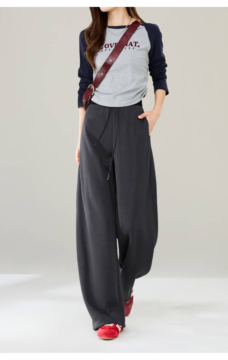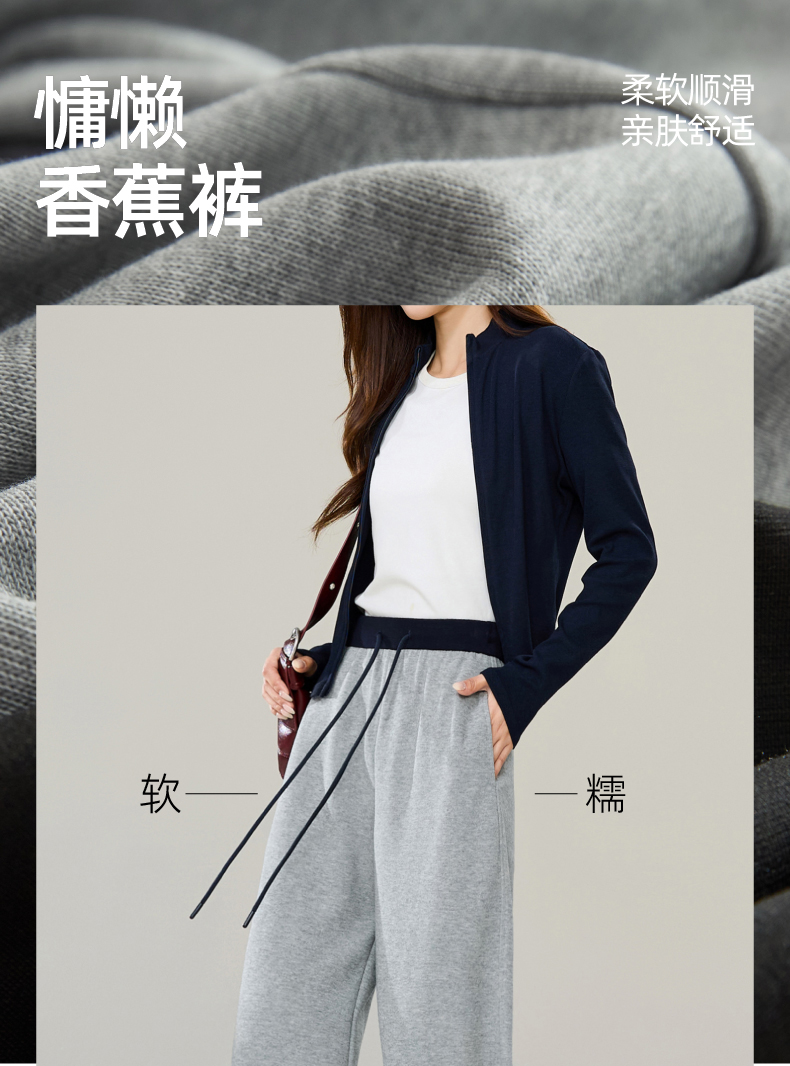 【两穿-运动香蕉裤】逸阳秋新款遮肉显瘦慵懒高腰阔腿休闲裤子8117