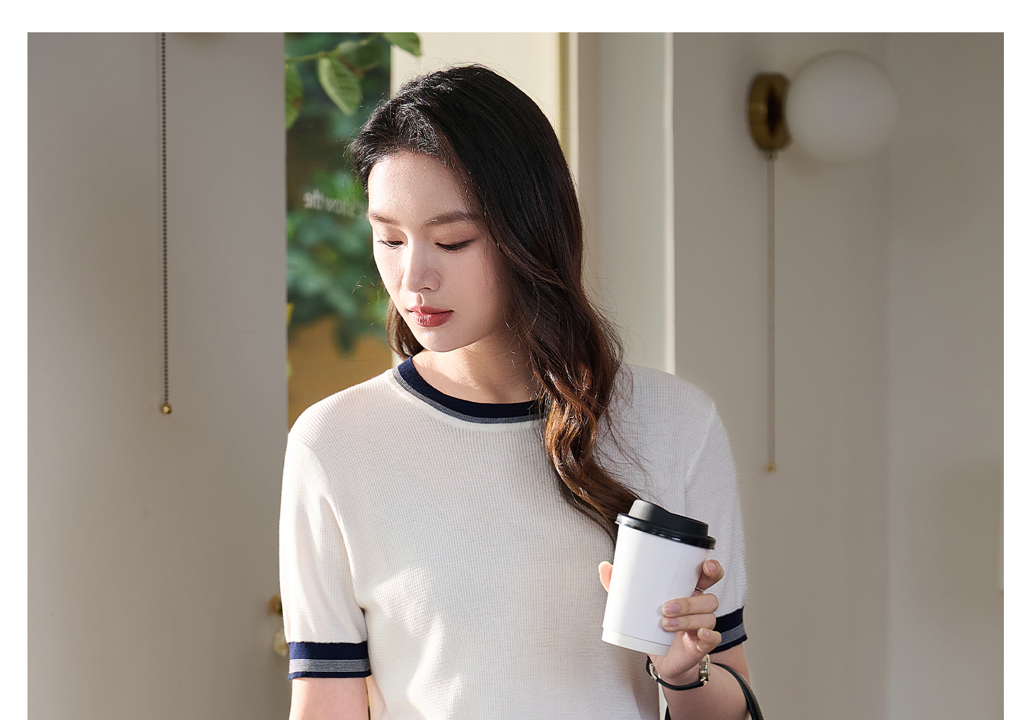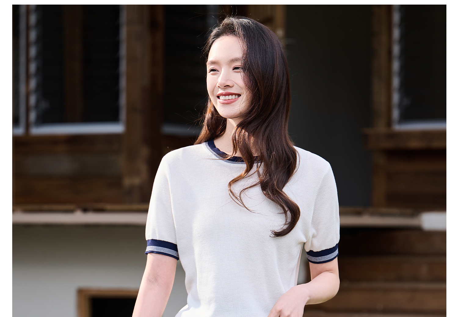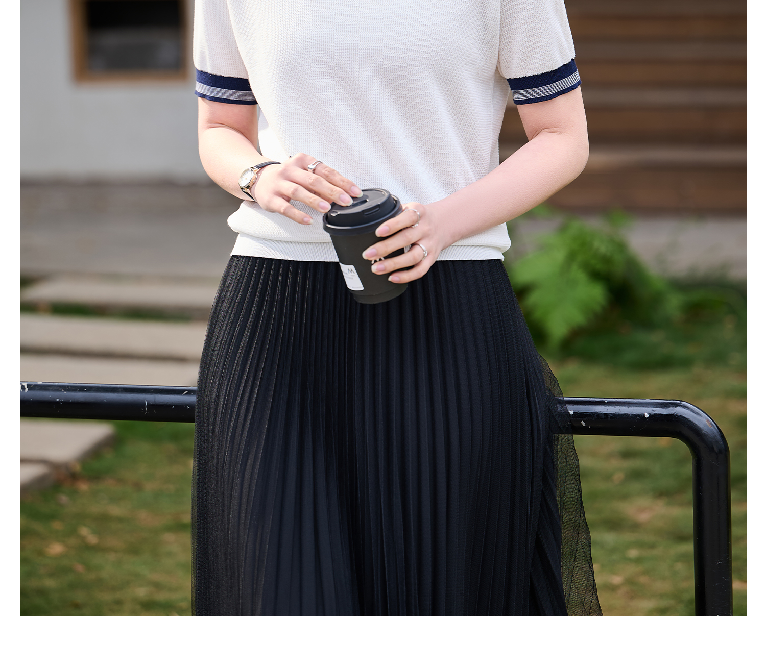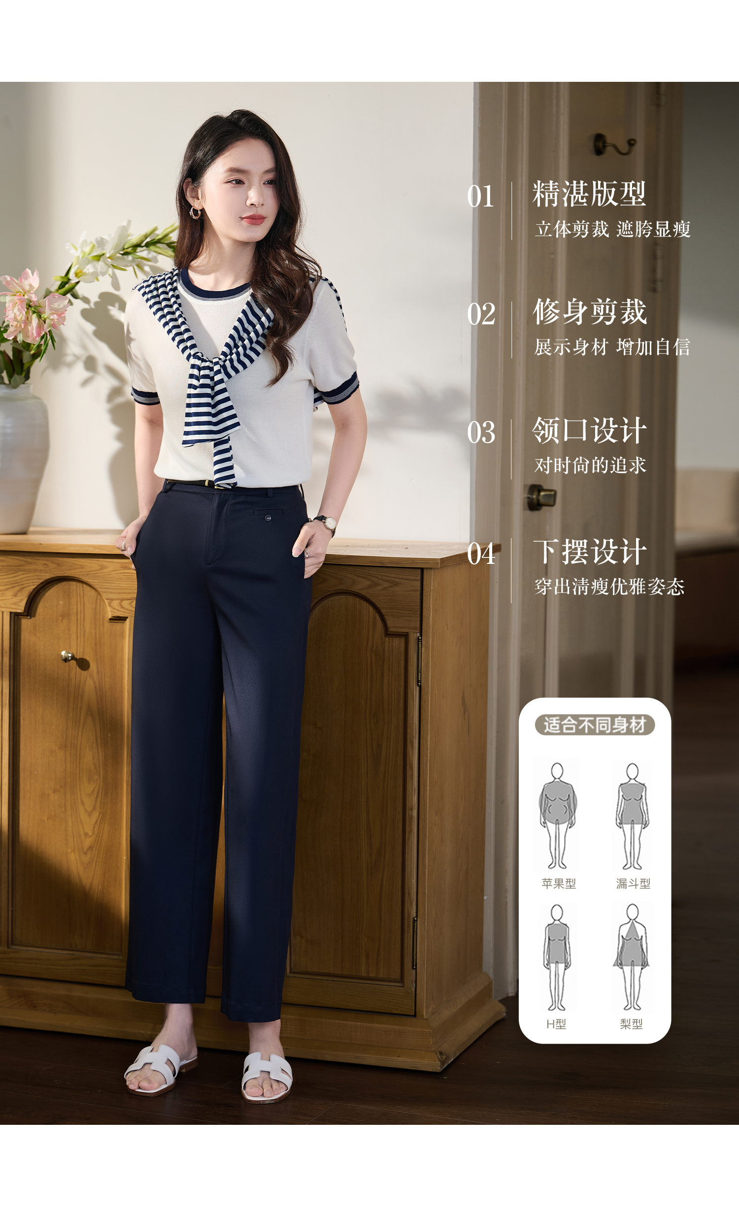 桑蚕丝+天丝+棉 时髦撞色边 立体肌理 米思阳2026夏季新款静奢老钱针织衫圆领衫T恤上衣女1037