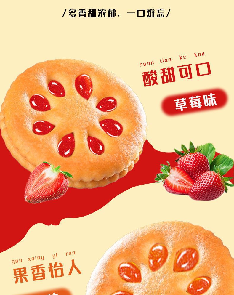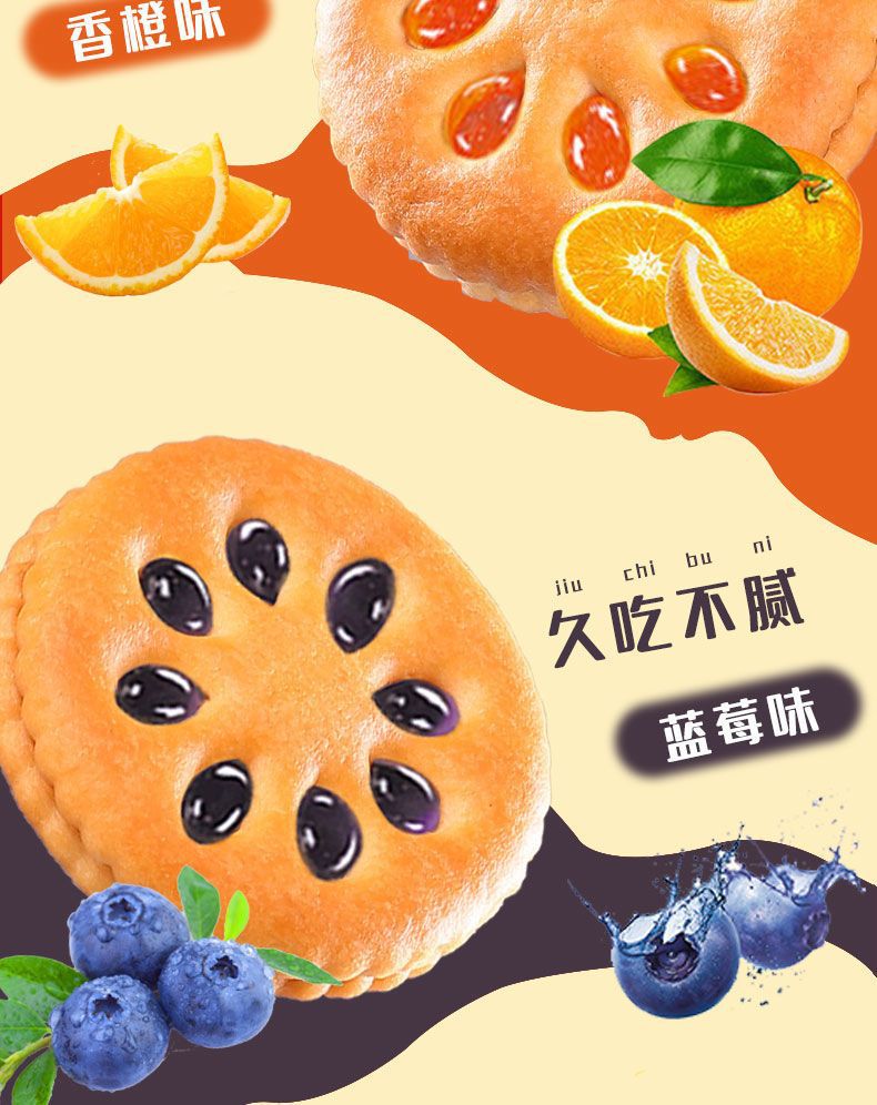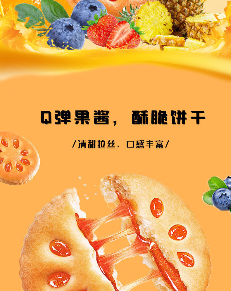 【超值❗️9.9抢20包🔥果酱夹心饼干】草莓味,蓝莓味,香橙味,菠萝味,4种口味,果味香浓,Q弹好吃!早餐代餐网红休闲食品办公室零食整箱独立包装糕点