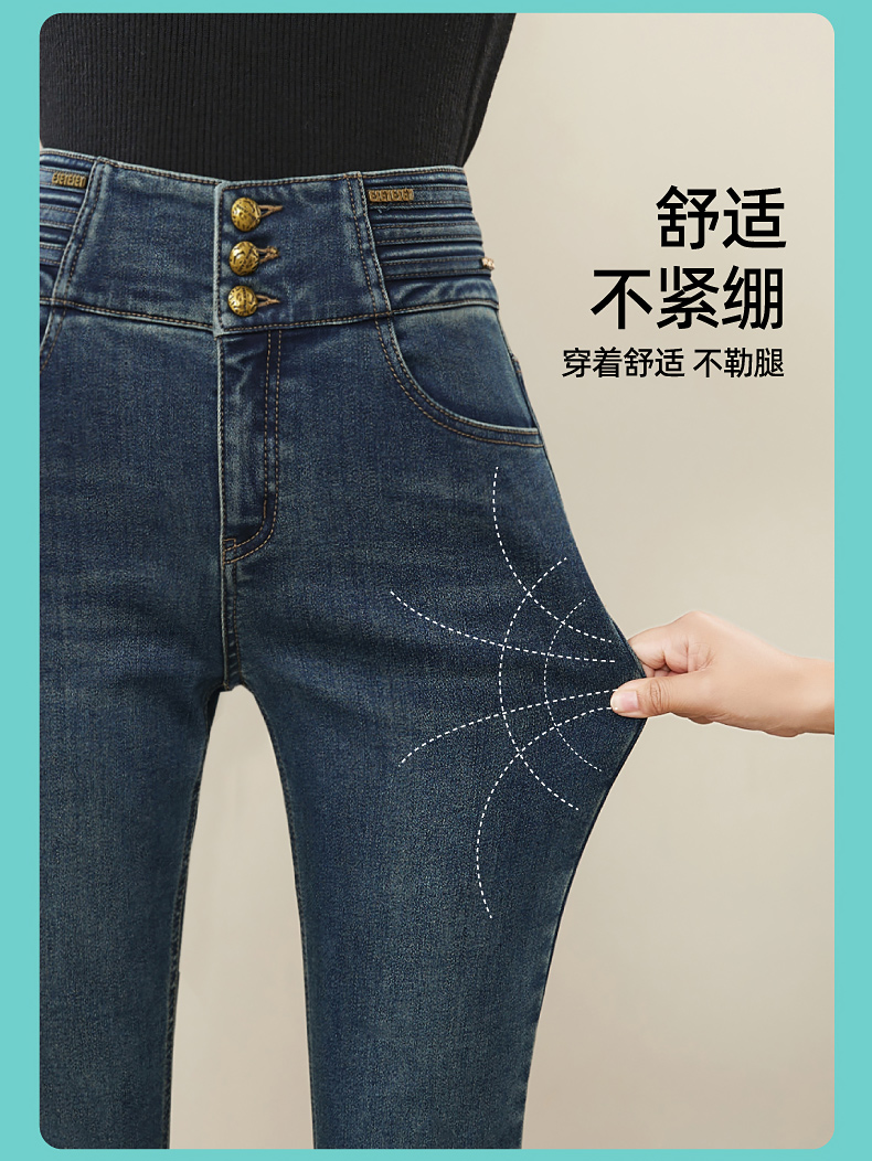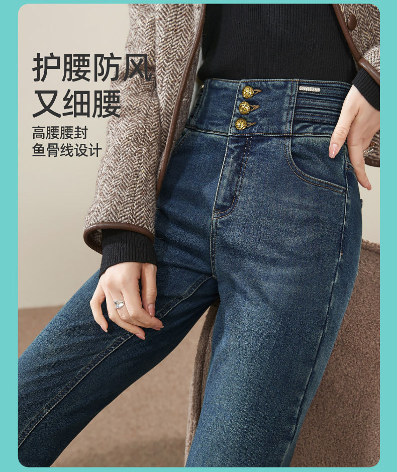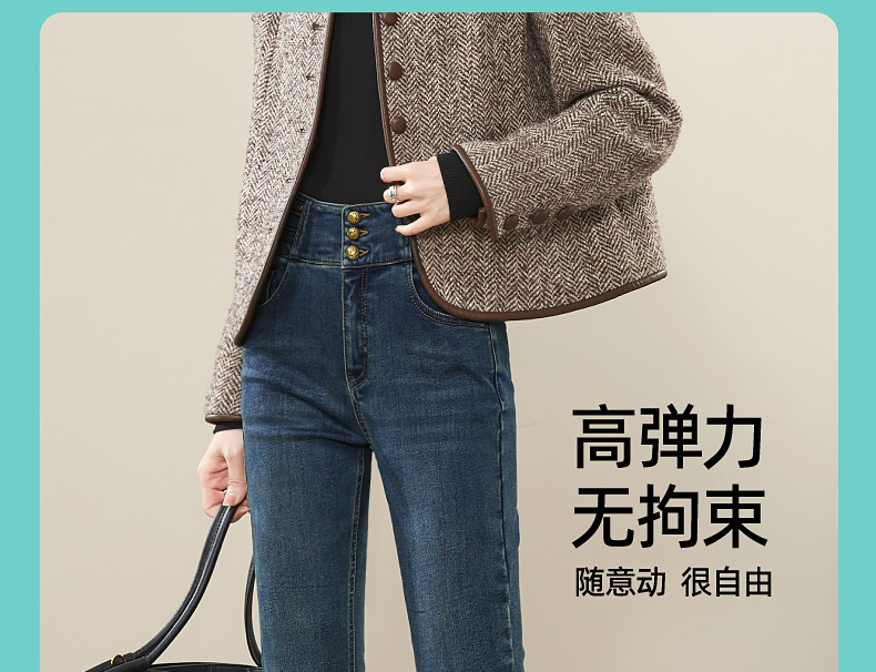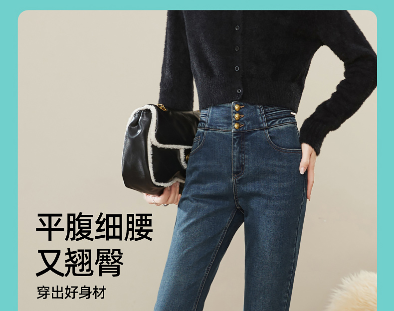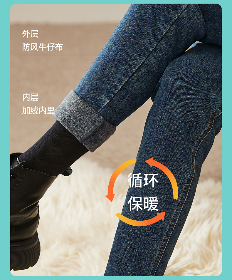【加绒-高腰-铅笔裤】逸阳冬季新品太阳能保暖修身显瘦小脚牛仔裤1300R