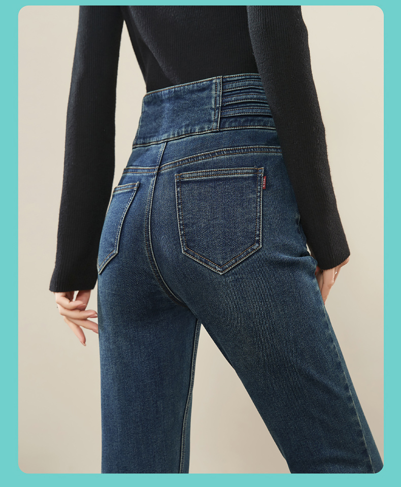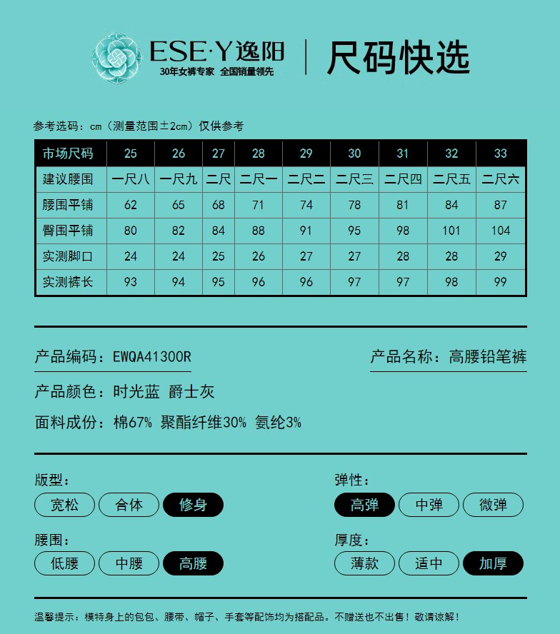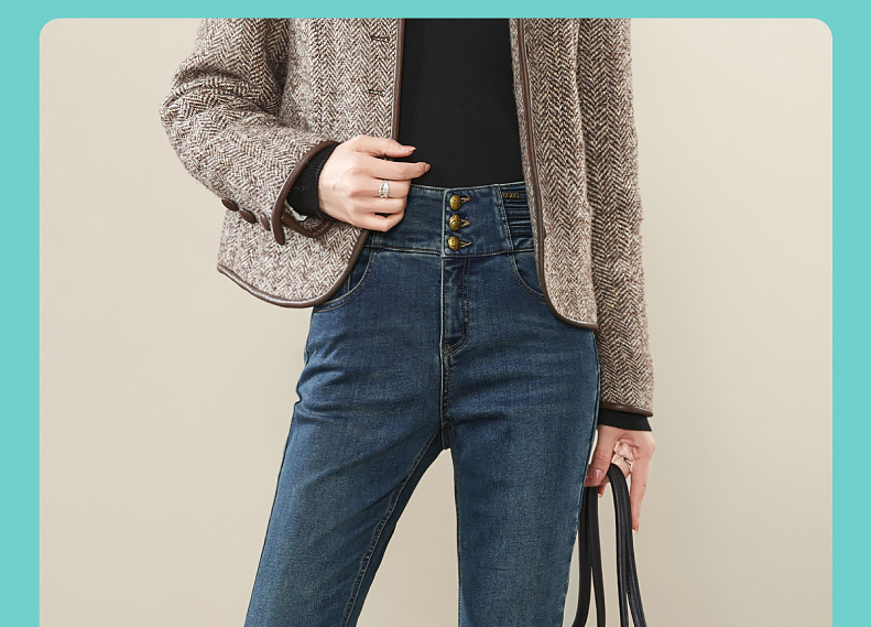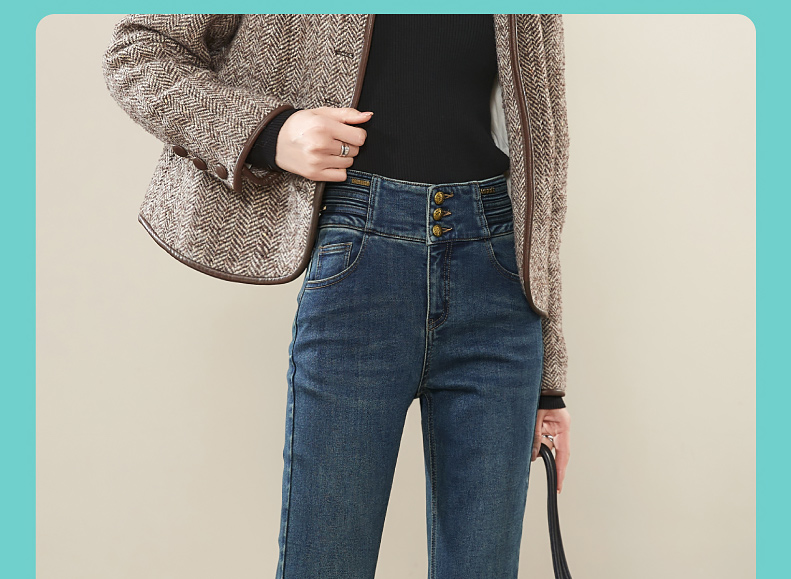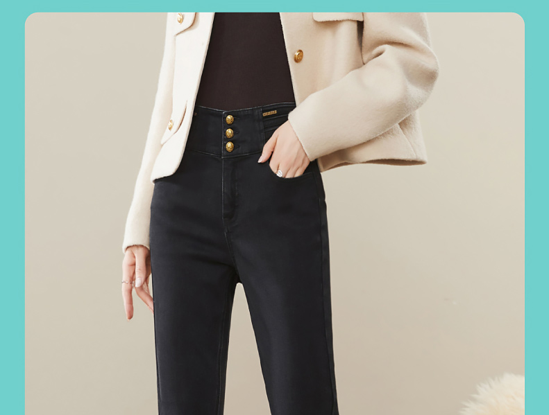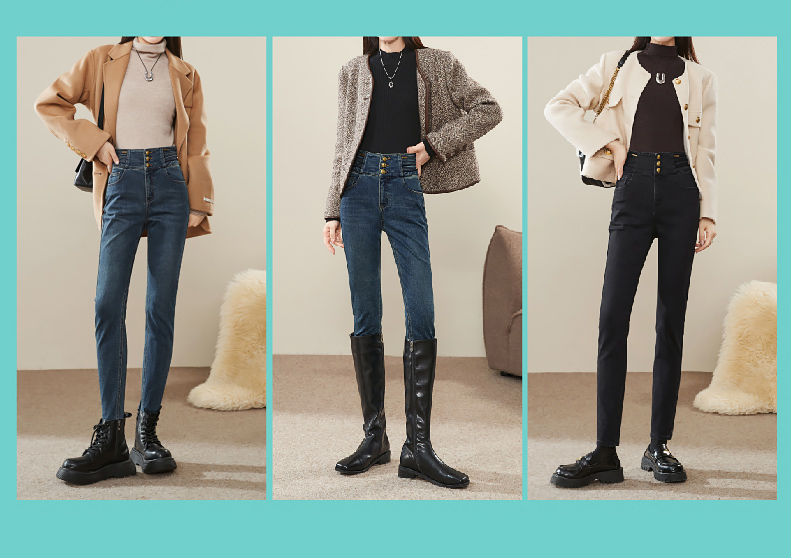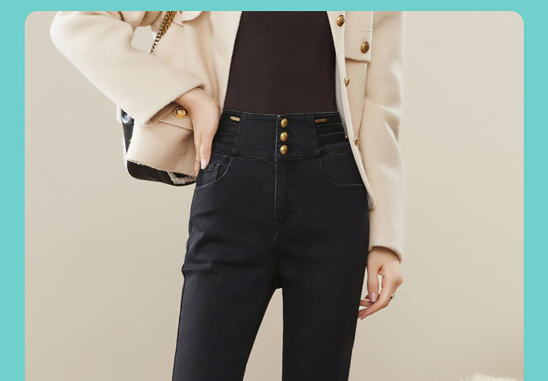 【加绒-高腰-铅笔裤】逸阳冬季新品太阳能保暖修身显瘦小脚牛仔裤1300R