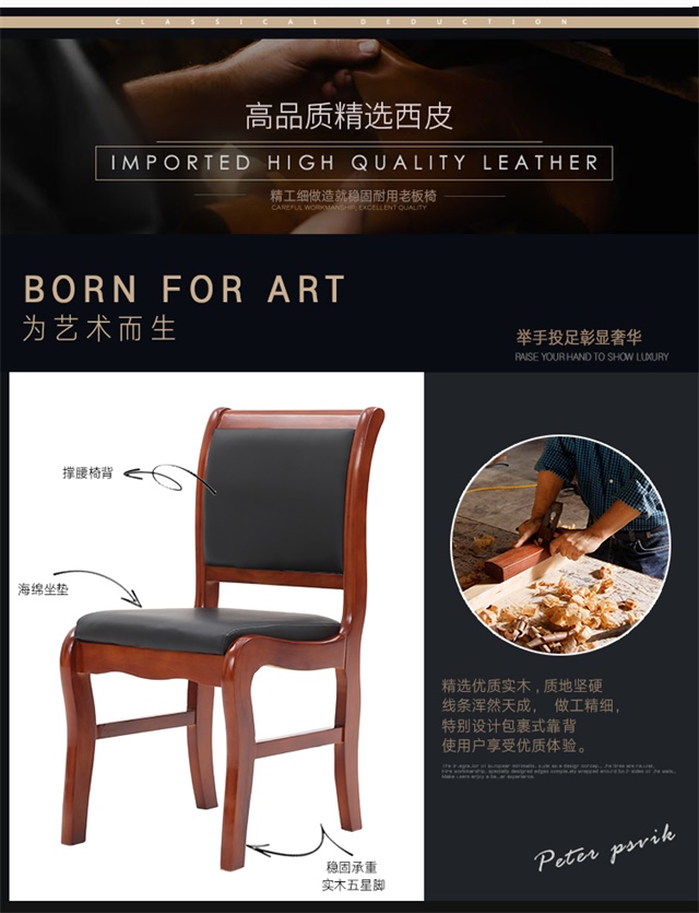 中伟办公椅电脑椅实木皮革会议椅靠背椅培训椅子