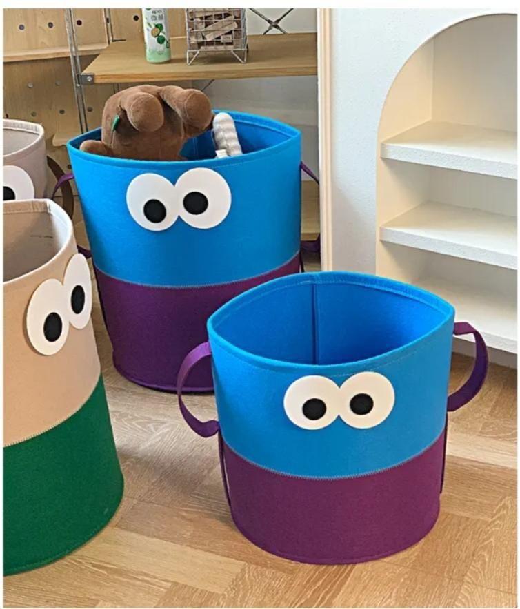 「买1送1!19.9到手两个」抖音小红书同款大容量看对眼大眼仔可折叠毛毡玩具杂物收纳整理脏衣篓