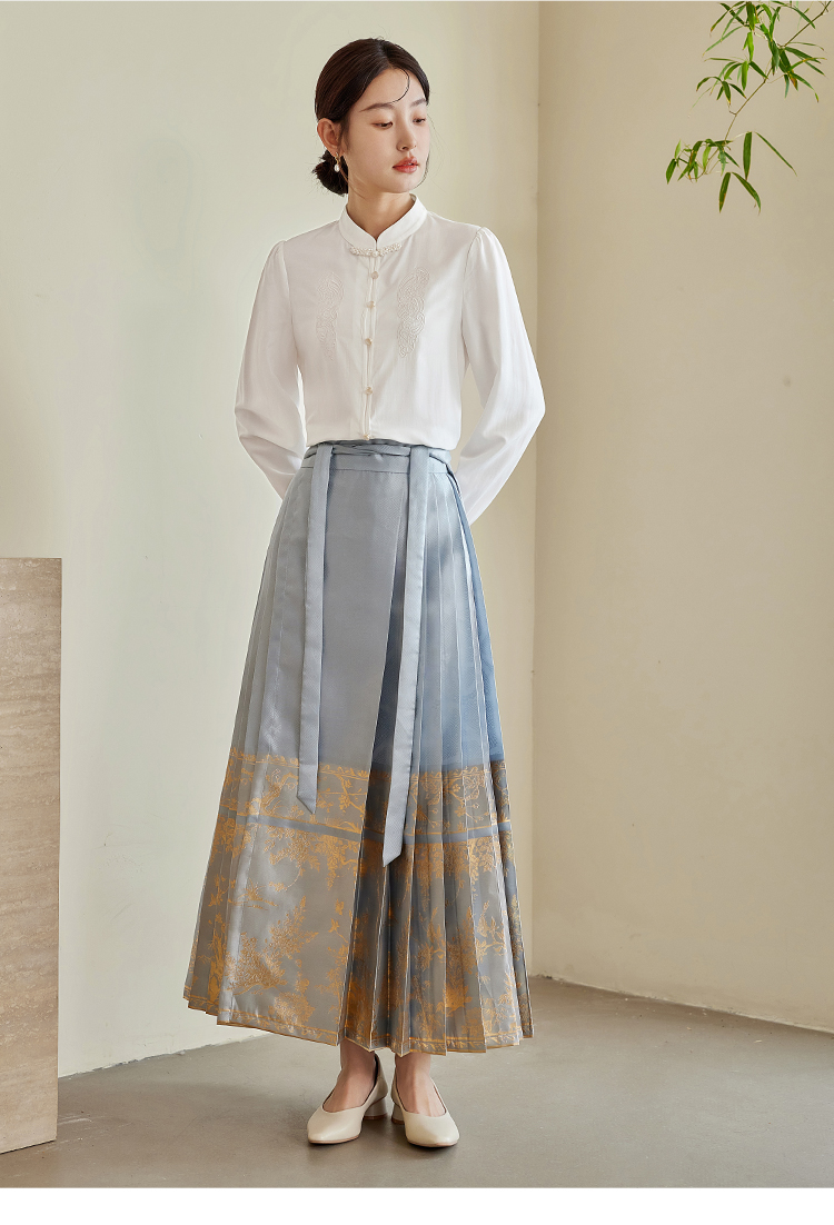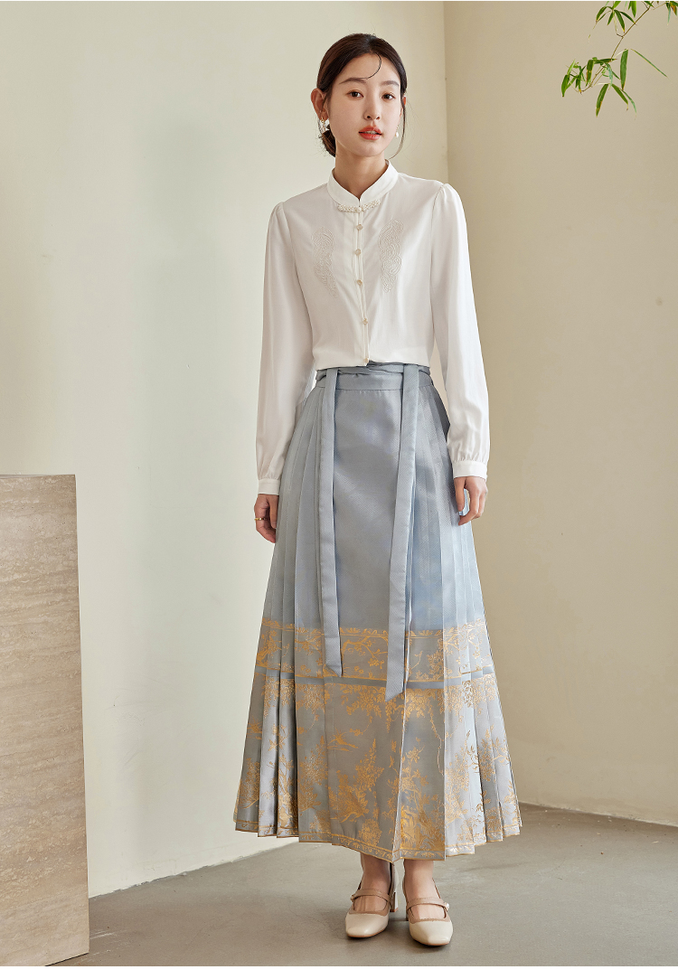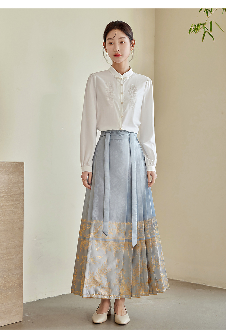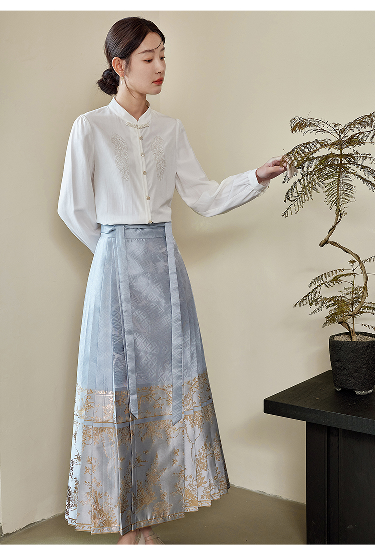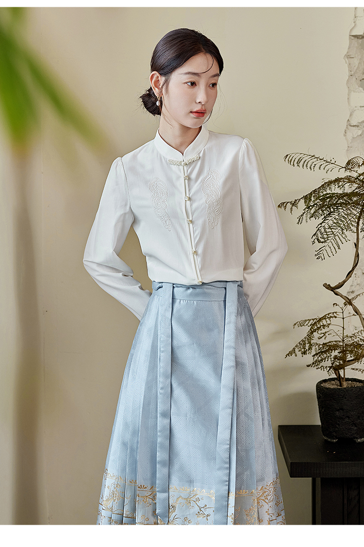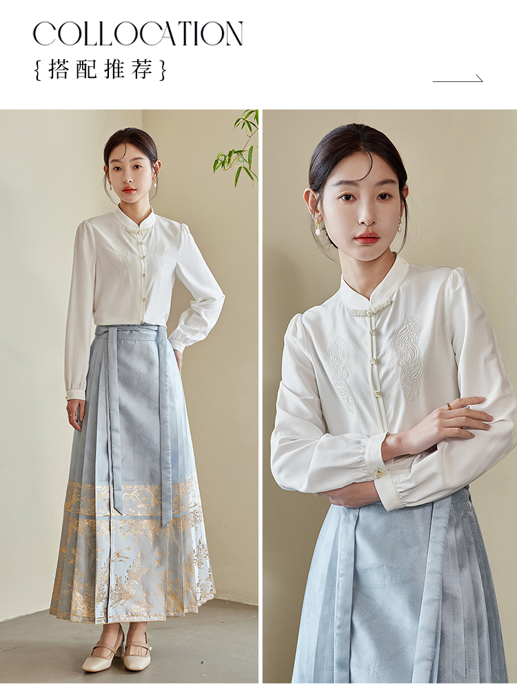【年终特卖】熙世界国风禅意刺绣白色衬衫女2025秋款仙气新中式立领长袖衬衣