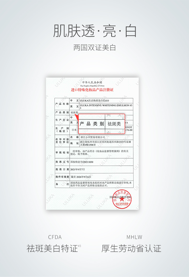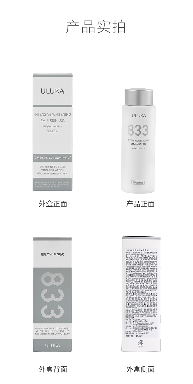 ULUKA833美白乳液150ml
