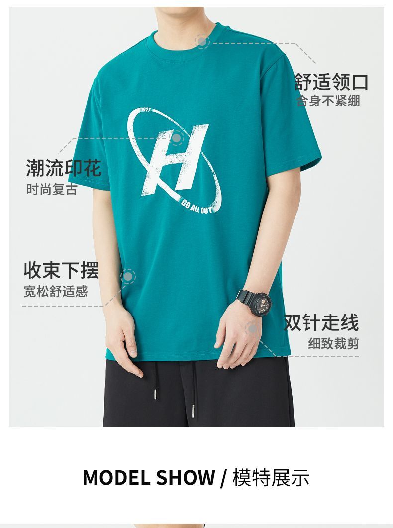 回力短袖男重磅纯棉t恤夏季新款潮牌印花圆领宽松休闲体恤男
