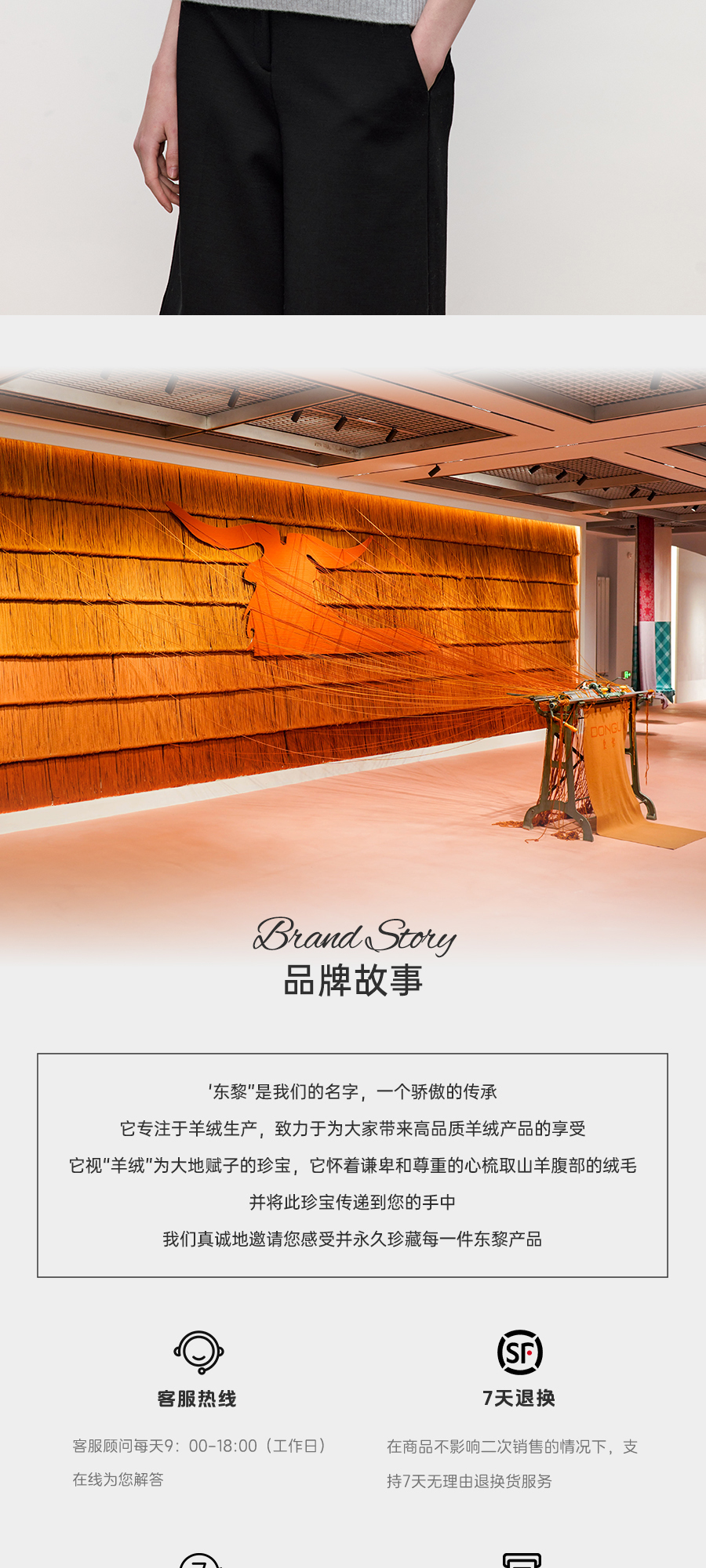 东黎羊绒是赤峰东荣集团自主品牌,自有牧场/羊绒制品全产业链优势,实现了羊绒从“牧场”到“商场”的华丽转变。