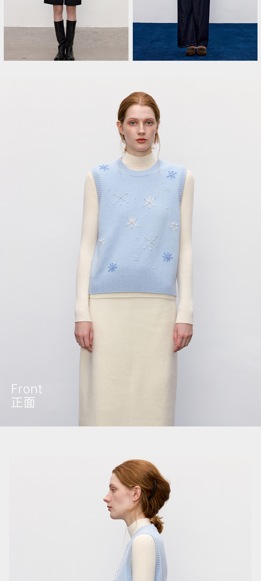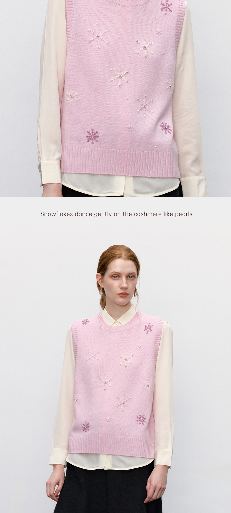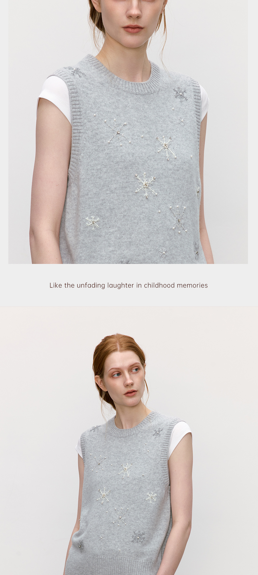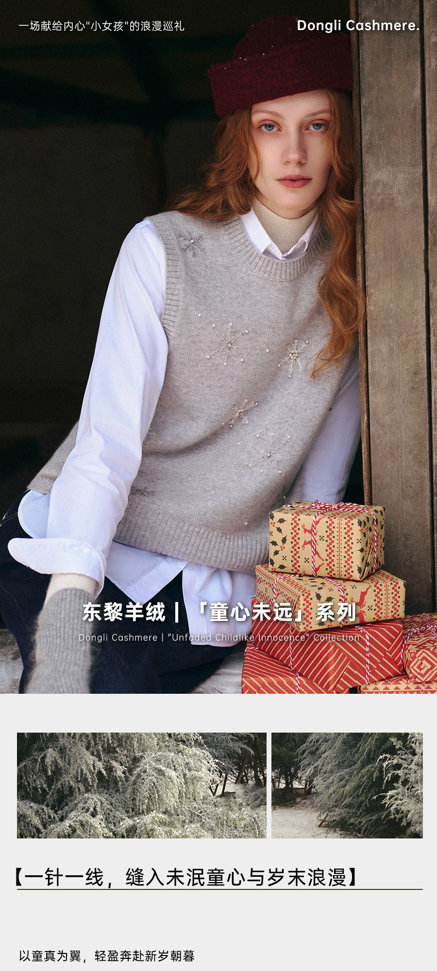 东黎 • 童心未远 初雪 山羊绒女士冬季浪漫雪花马甲 5634