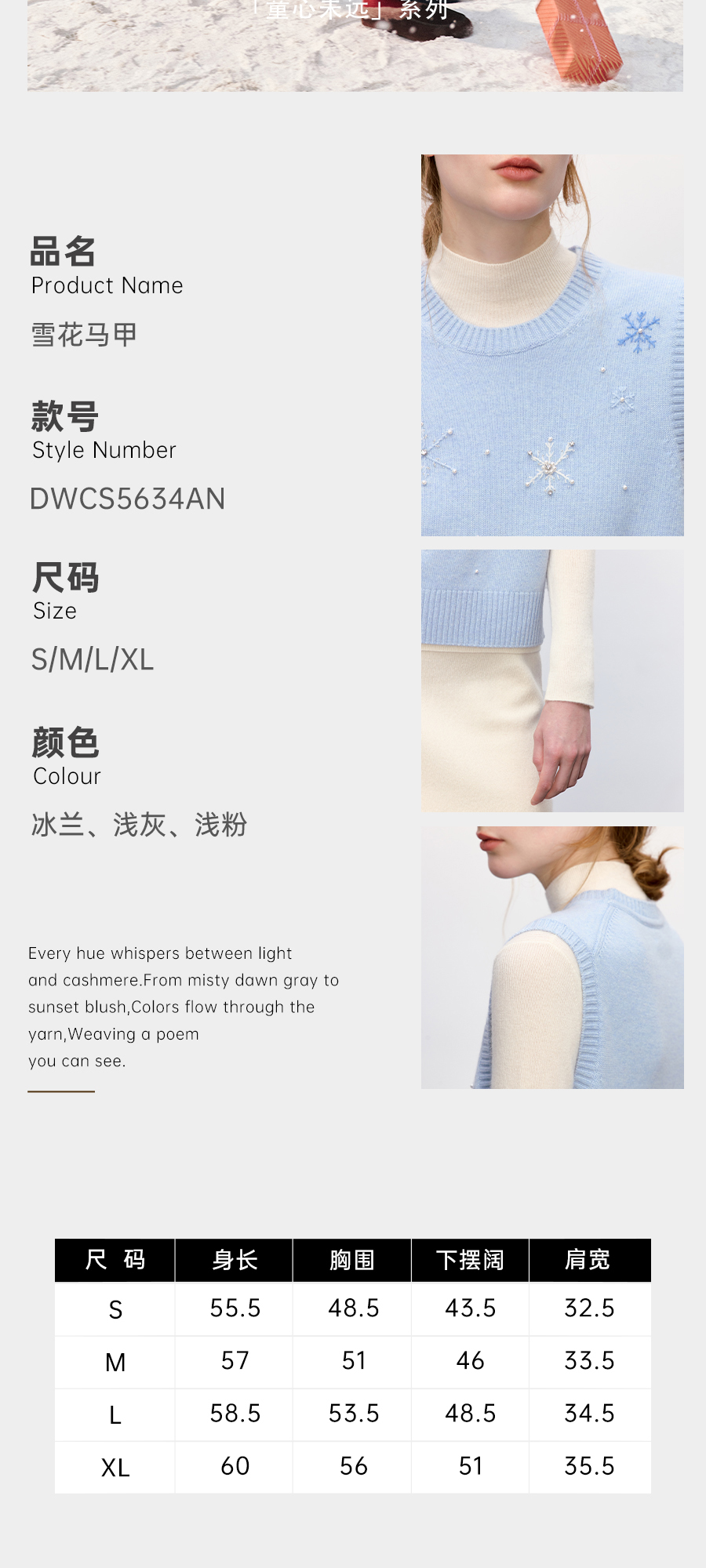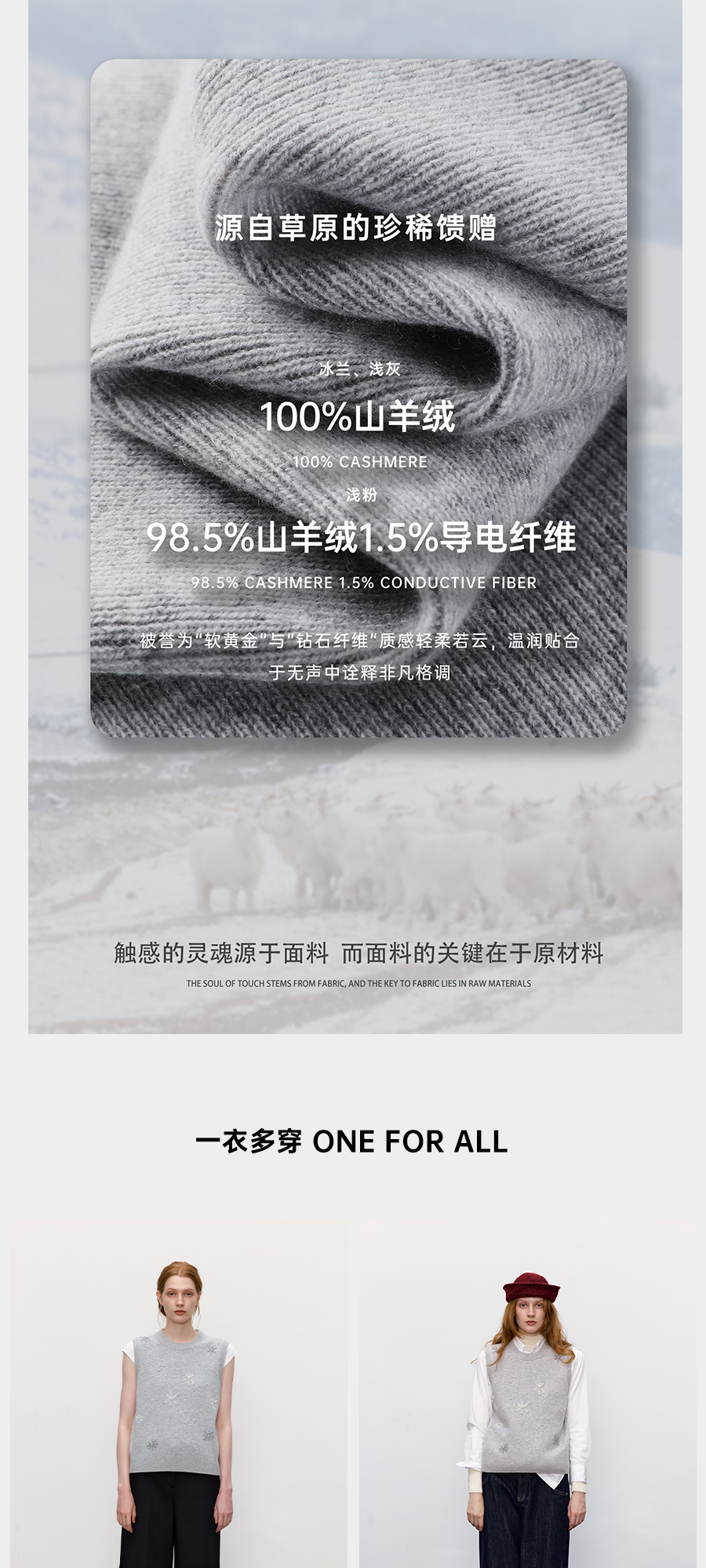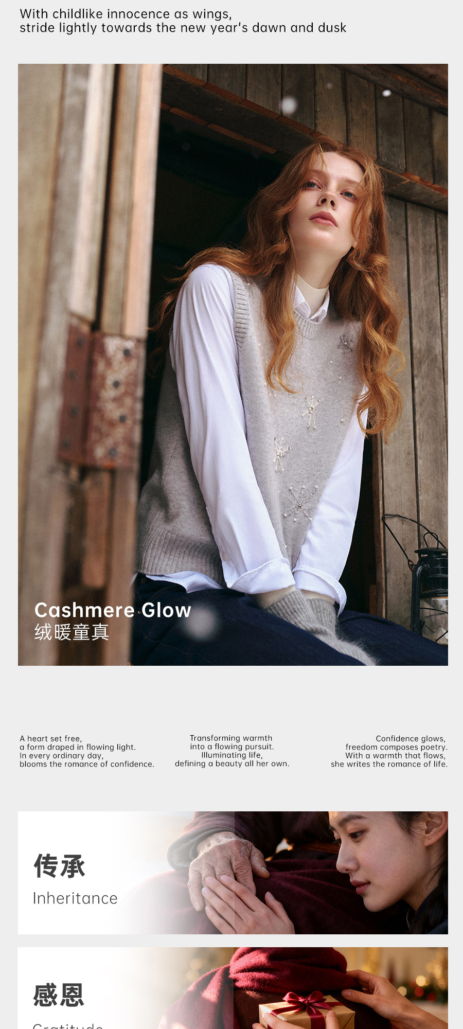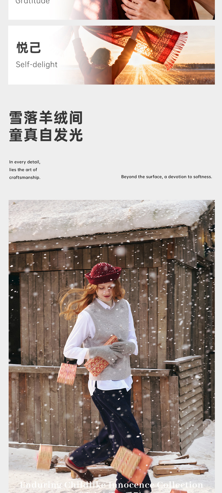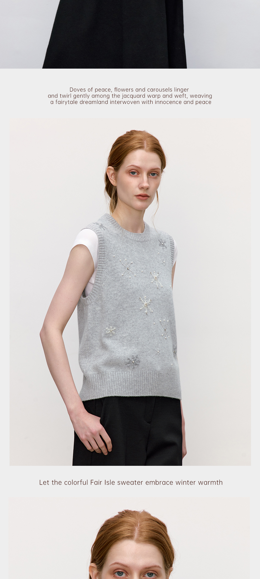 东黎 • 童心未远 初雪 山羊绒女士冬季浪漫雪花马甲 5634