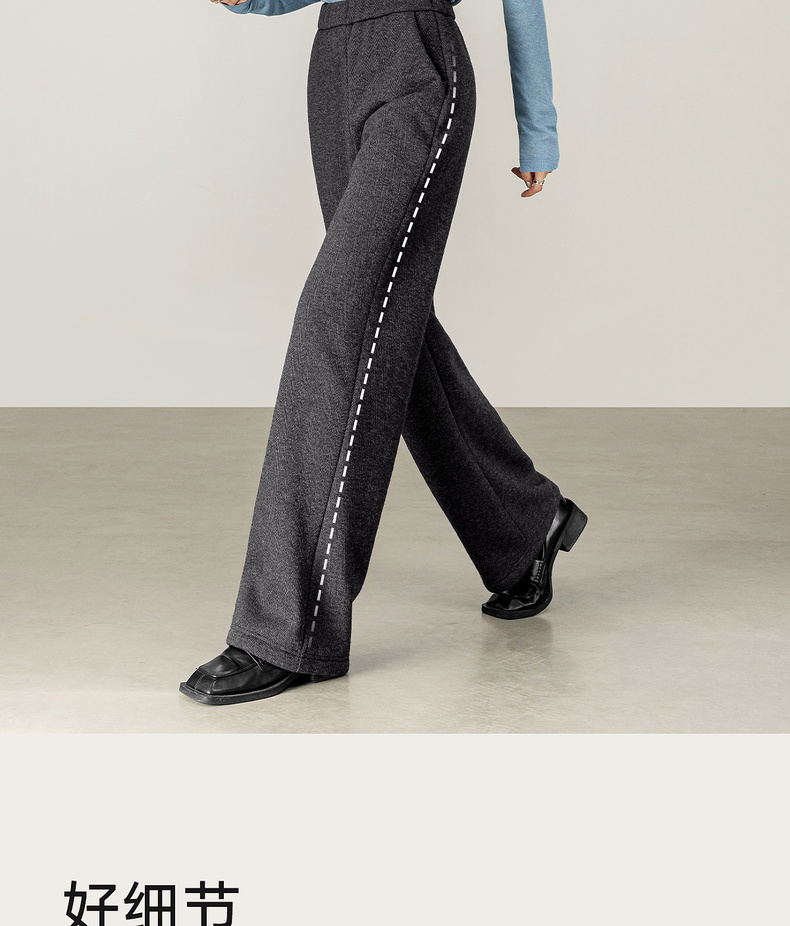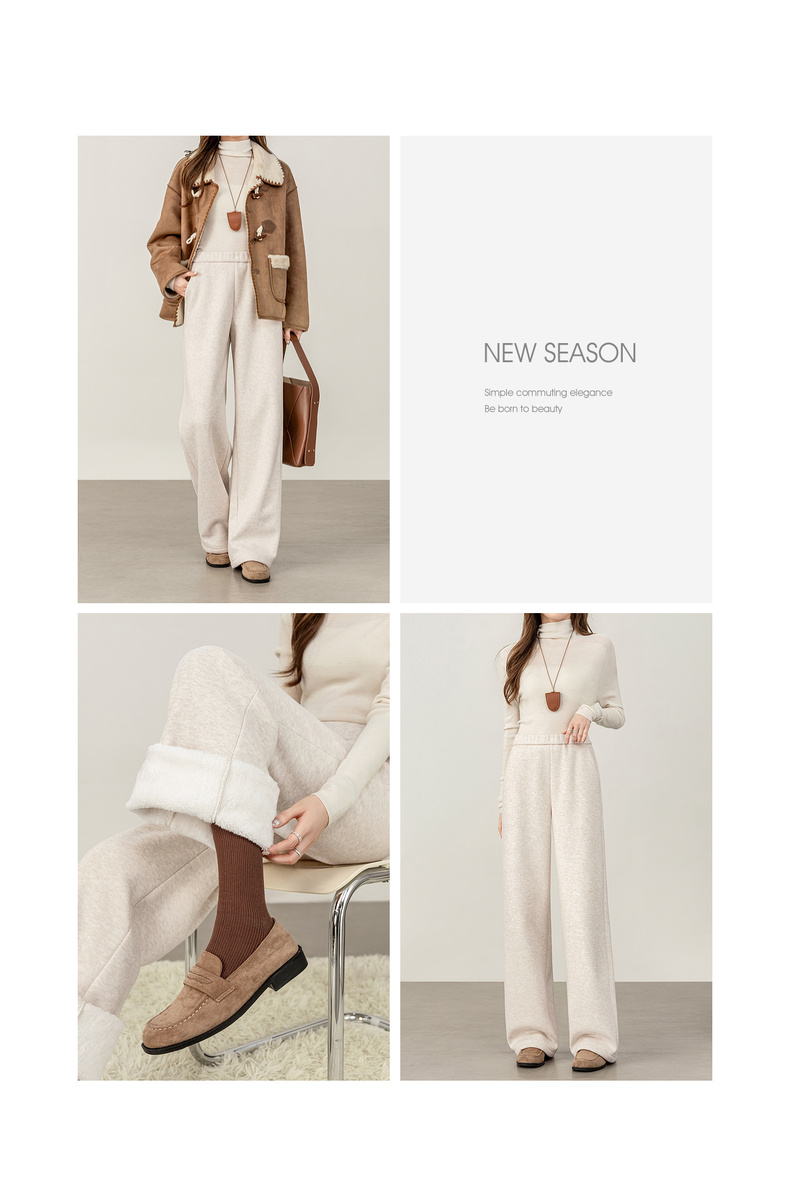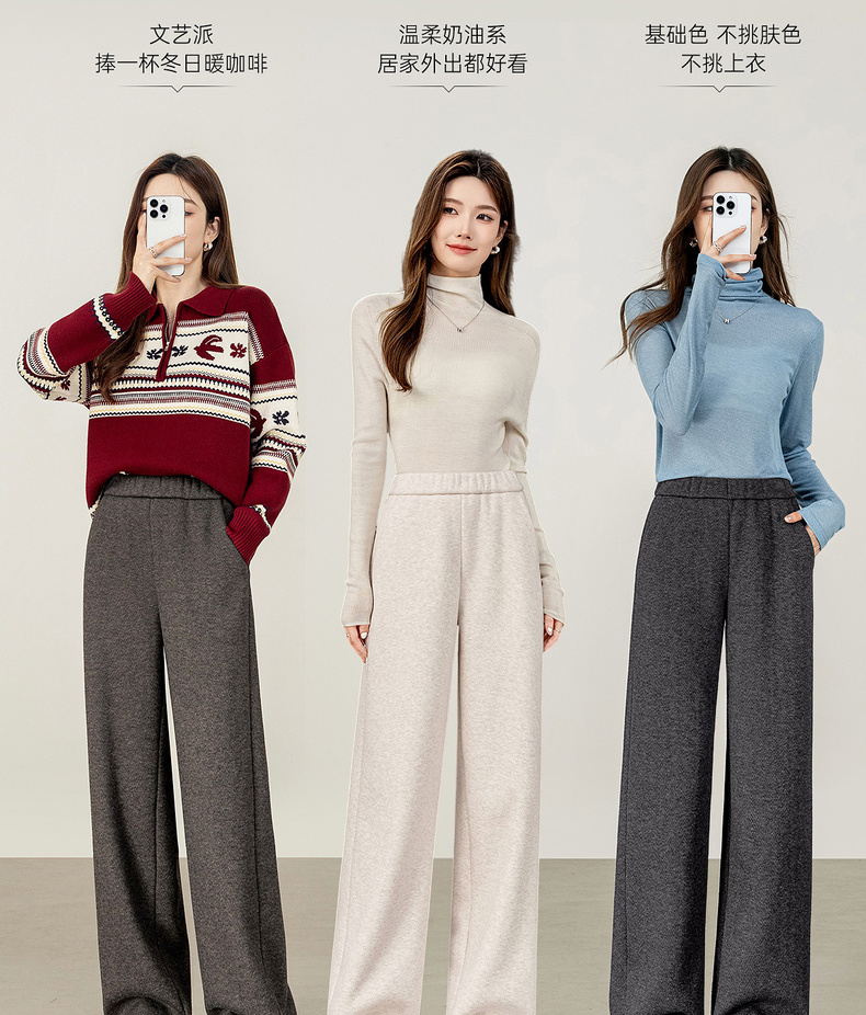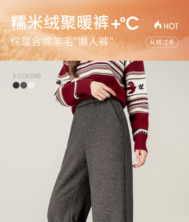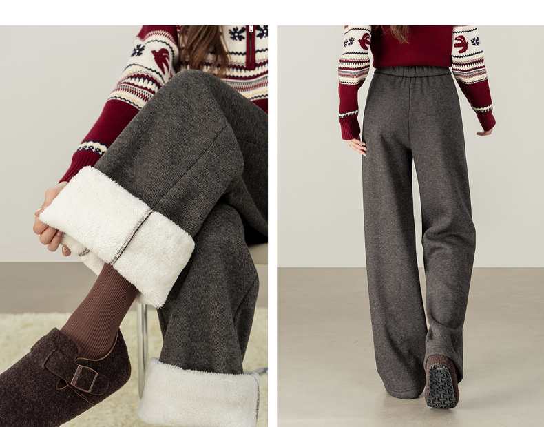 【内购】【天生保暖】通勤梨形身材松紧腰内里加绒不臃肿显瘦阔腿长裤-154KD3652