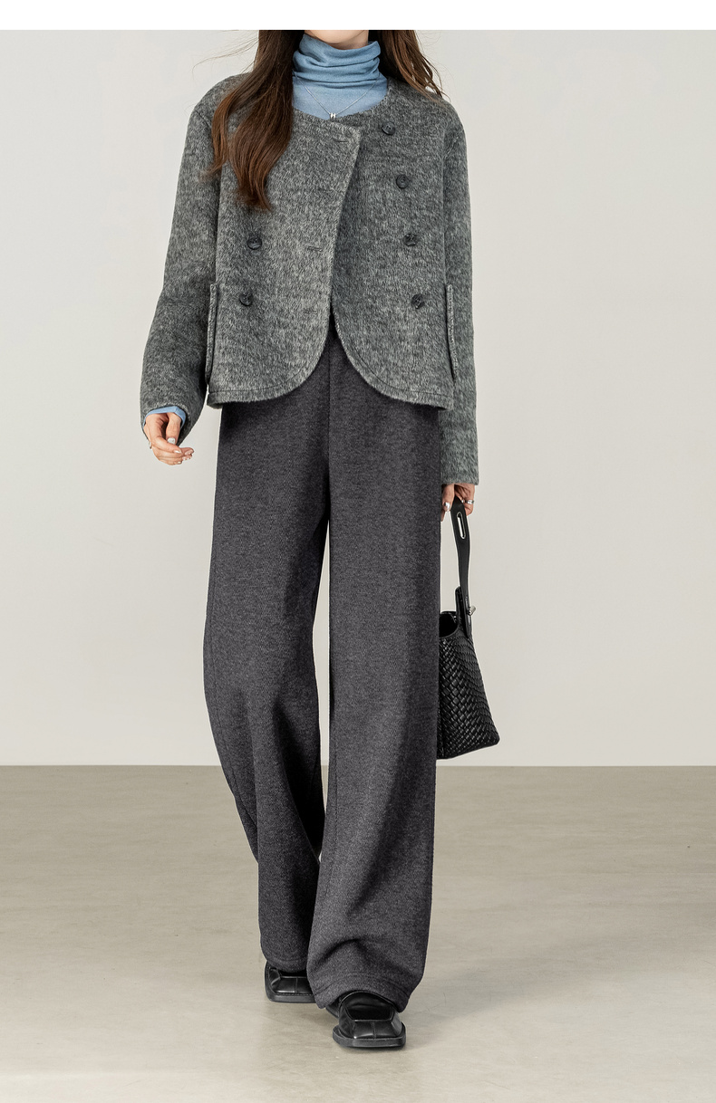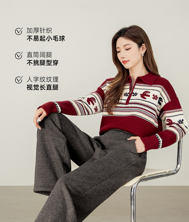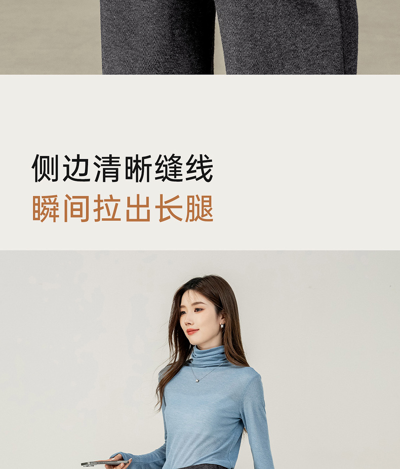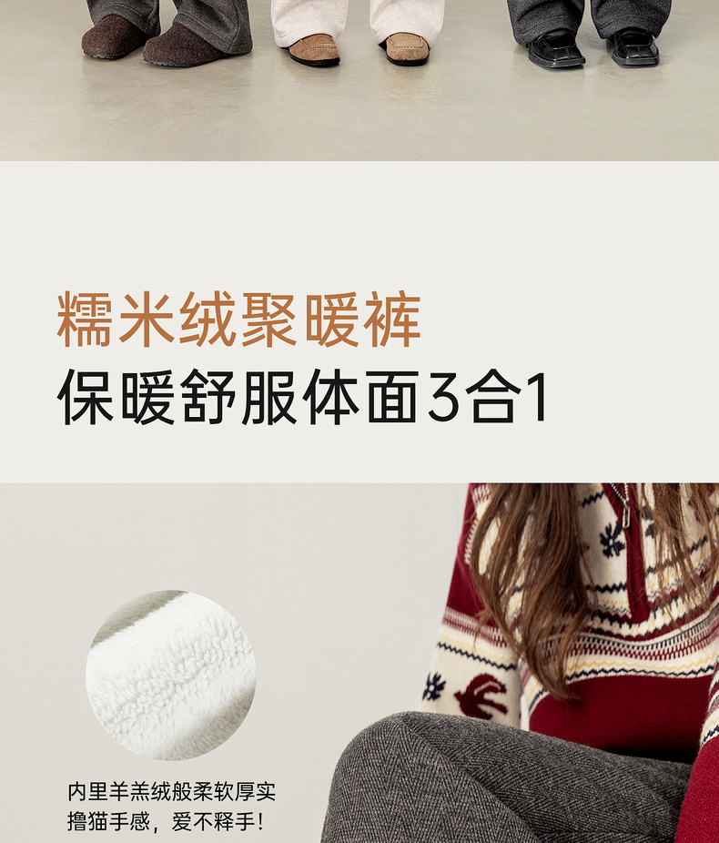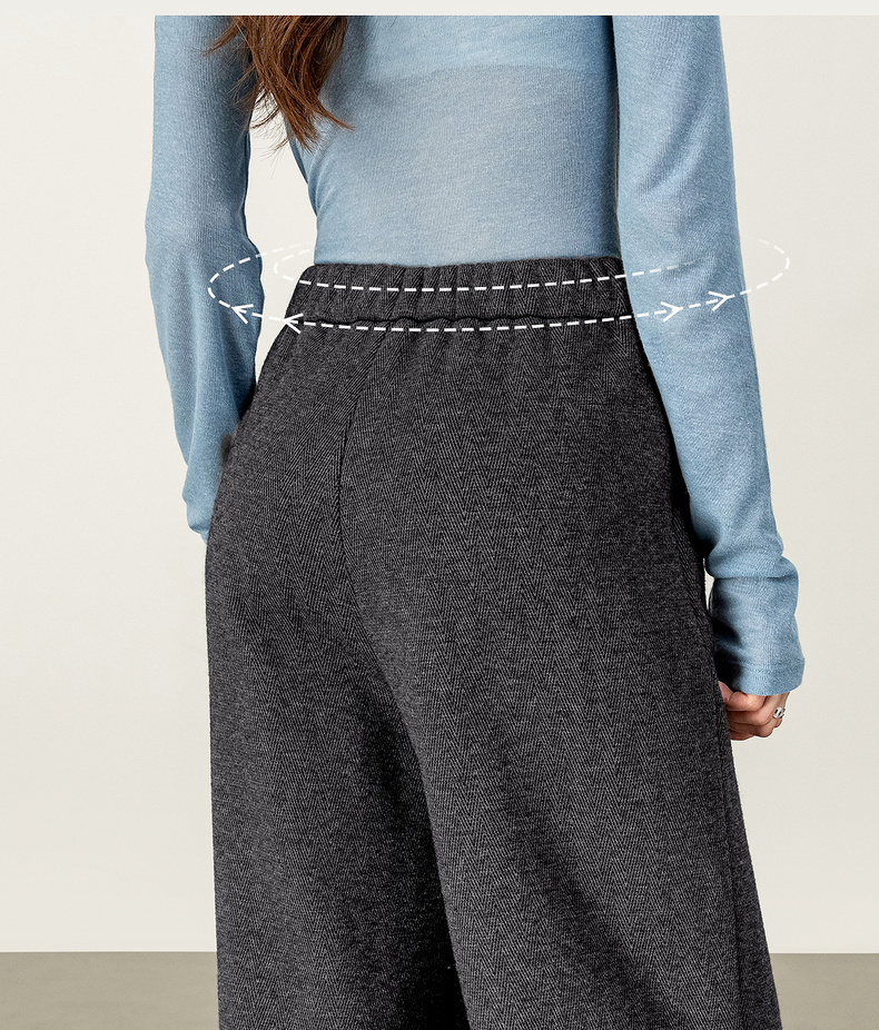 【内购】【天生保暖】通勤梨形身材松紧腰内里加绒不臃肿显瘦阔腿长裤-154KD3652