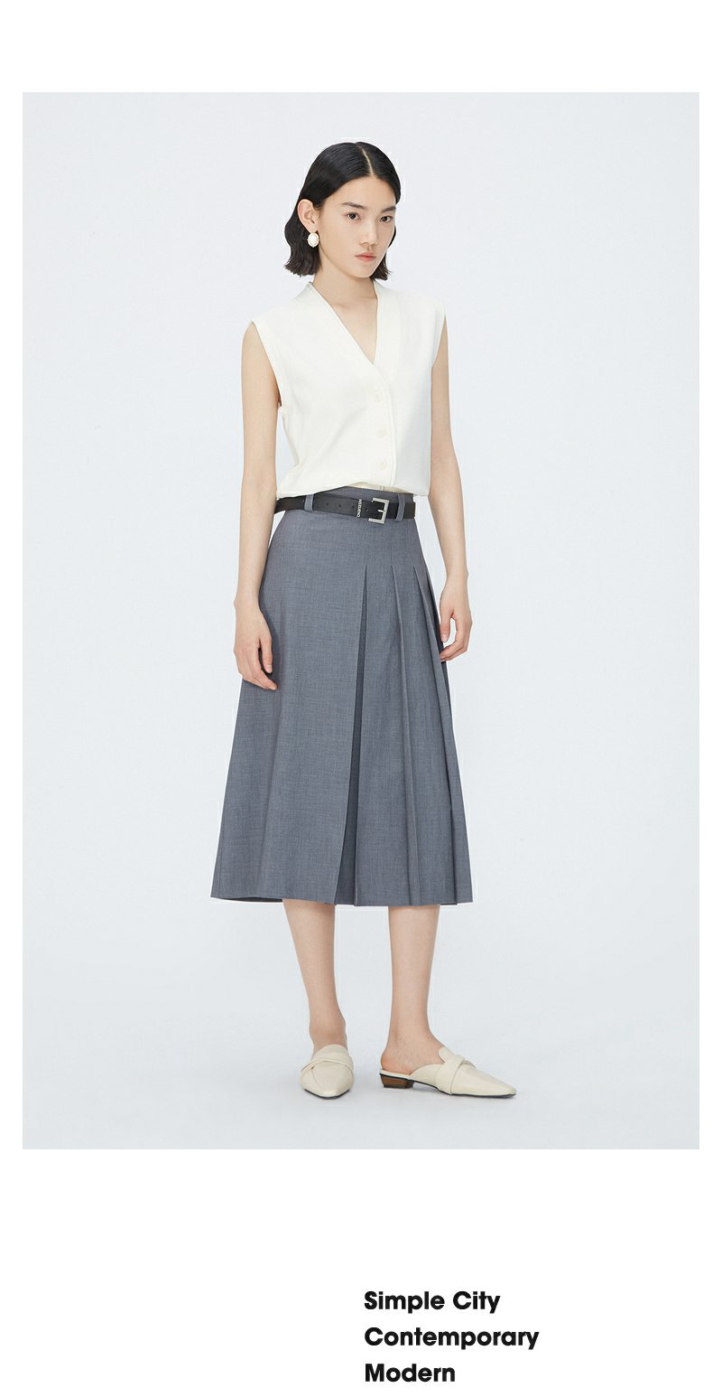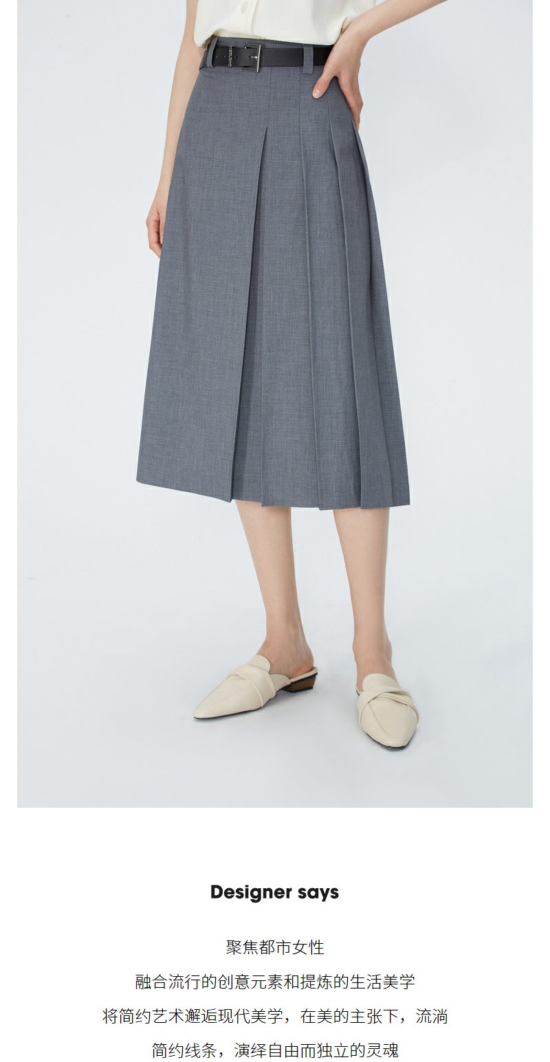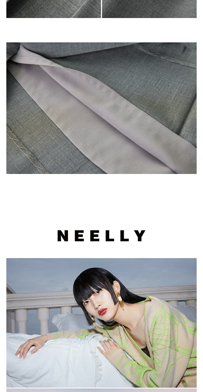 NEELLY纳俪商场同款夏季新款灰色西装中长款半身裙女高腰显瘦长裙N25054E04653